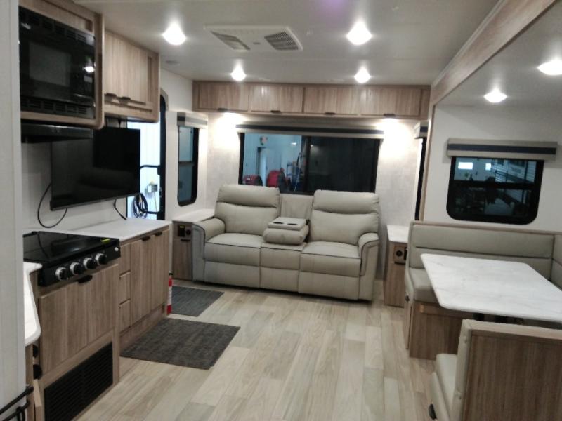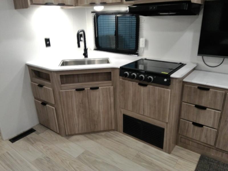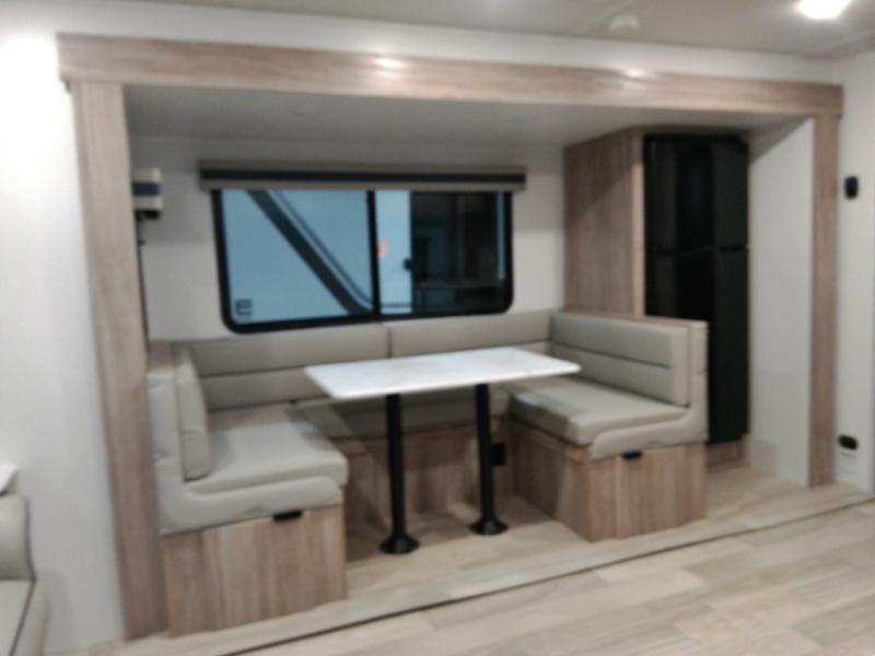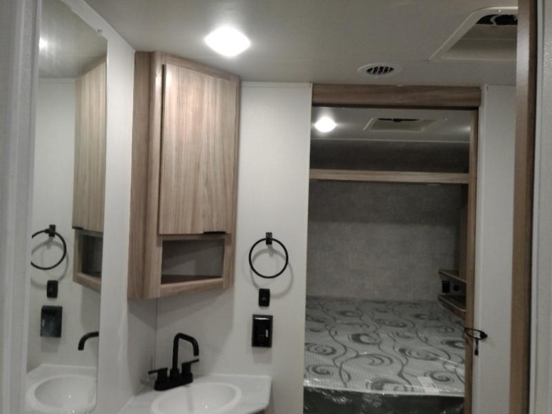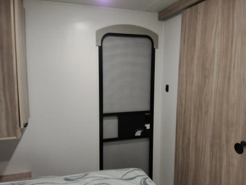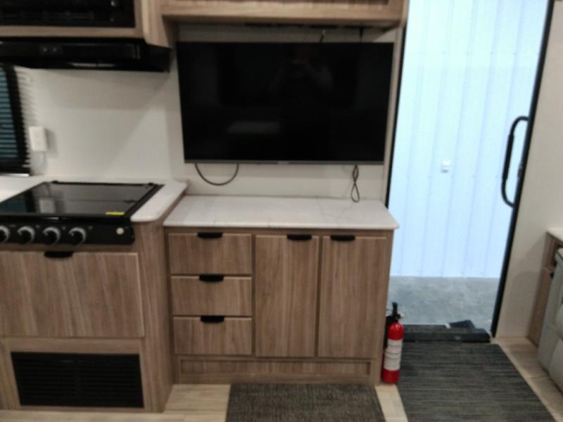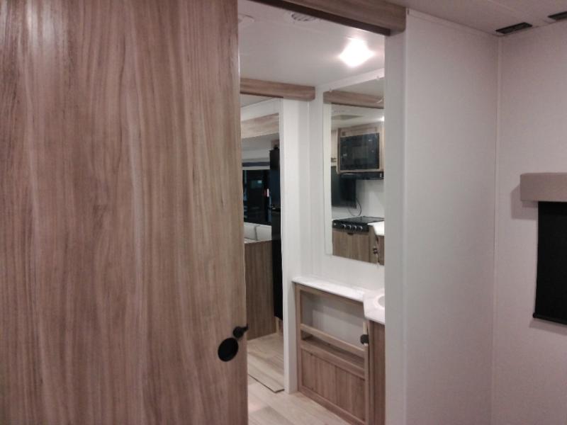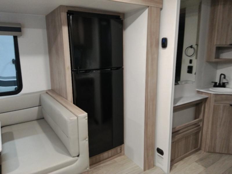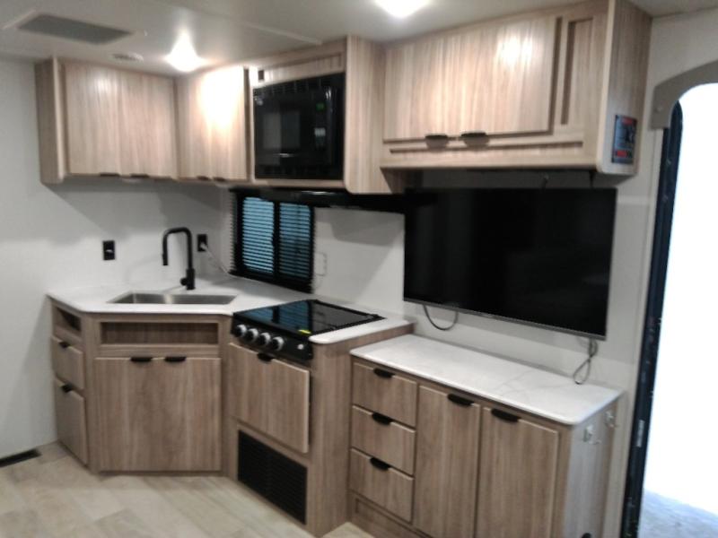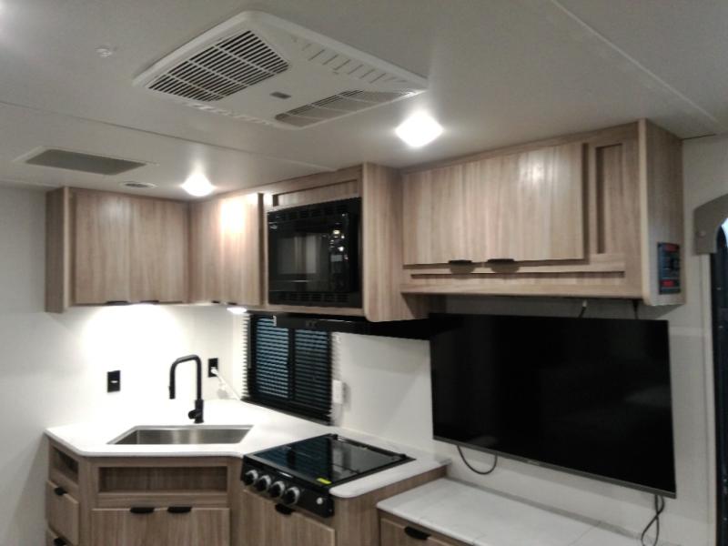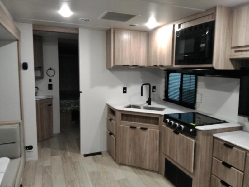 This single slide Access travel trailer offers you a great home on wheels featuring dual entry doors, a spacious walk-thru bath, and private front bedroom with private entry. You will find the main combined living area and kitchen open and spacious thanks to the slide. Cook your family their favorite meals with the appliances inside, dine at the u-shaped dinette where you can add an optional TV opposite if you like. A convenient walk-through bath is spacious enough for two to get ready at once since it is the full width of the trailer. Next, head through space saving sliding doors to the front private bedroom with its own access to the outside through the second entry. Here a queen bed awaits for a great nights rest. This bedroom offers plenty of storage in bedside wardrobes, under bed storage for extra blankets and larger items, plus so much more!