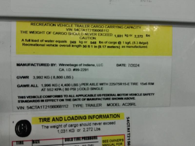 Used 2024 Winnebago Industries Towables Access 26RL Travel Trailer