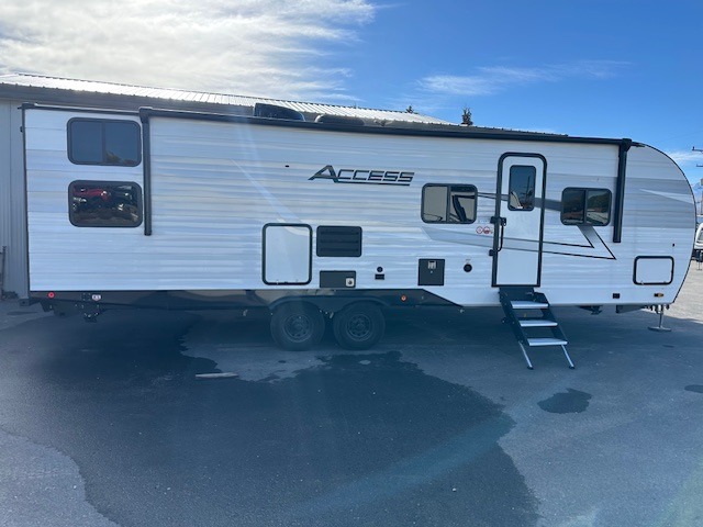 With any Winnebago Access travel trailer you will find thoughtful, clean, and contemporary designs filled with premium features that all have come to expect on any Winnebago towable. The powered stabilizer jacks make setting up camp easy with just the touch of a single button. You will appreciate the stylish exterior front profile and thicker sidewall metal for greater aerodynamics plus strength and durability. With a fully enclosed underbelly you can extend your camping season into the colder months, and the 12 volt tank pad heaters will keep you from having frozen pipes. On the inside, a porcelain toilet, larger skylights for more natural lighting, abundant storage, and spacious living areas make every camping trip more enjoyable. And, the 200 watt solar power reduces the need for shore power which makes it easy to go off-grid. Make your choice today and Access your next adventure!