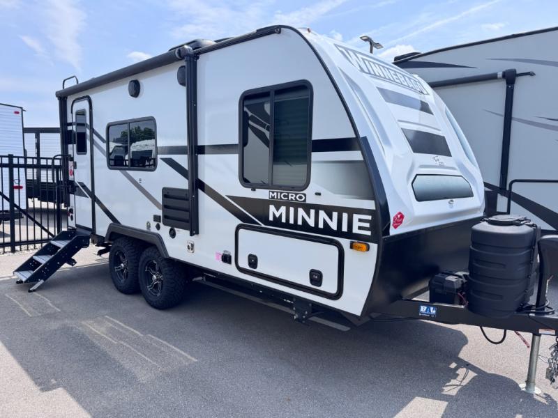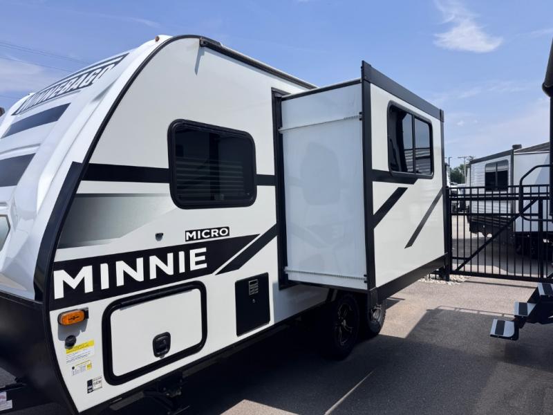 Start out on your boundless journey in one of these Winnebago Industries Towables Micro Minnie travel trailers! Towing is made simple with the 7' width to keep your Micro Minnie in your rear-view mirror. They don't lack in features either although they are compact in size. The spacious galley including a sink, refrigerator, a cooktop, and even a convection microwave oven allows you to cook without compromise. You will not only enjoy the entertainment found indoors with a Smart TV, a JBL premium sound system and Aura Cube high performance mechless media center, but outdoors you will also enjoy the JBL premium speakers and a power awning with LED lighting. Each model also comes with flexible exterior storage to make packing quick and easy, a 200-watt solar panel for off-grid camping, and Dexter TORFLEX torsion stub axles for smooth towing!