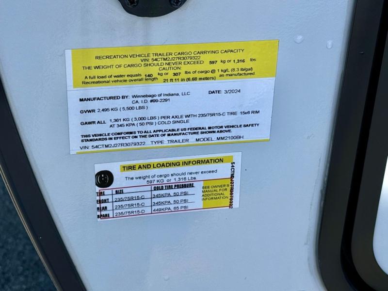 Used 2024 Winnebago Industries Towables Micro Minnie 2100BH Travel Trailer