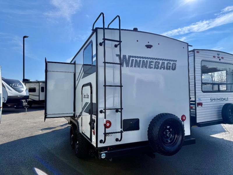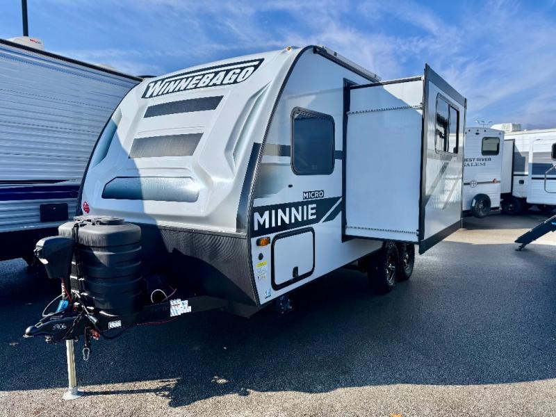 Start out on your boundless journey in one of these Winnebago Industries Towables Micro Minnie travel trailers! Towing is made simple with the 7' width to keep your Micro Minnie in your rear-view mirror. They don't lack in features either although they are compact in size. The spacious galley including a sink, refrigerator, a cooktop, and even a convection microwave oven allows you to cook without compromise. You will not only enjoy the entertainment found indoors with a Smart TV, a JBL premium sound system and Aura Cube high performance mechless media center, but outdoors you will also enjoy the JBL premium speakers and a power awning with LED lighting. Each model also comes with flexible exterior storage to make packing quick and easy, a 200-watt solar panel for off-grid camping, and Dexter TORFLEX torsion stub axles for smooth towing!