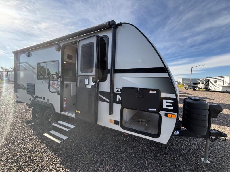 Start out on your boundless journey in one of these Winnebago Industries Towables Micro Minnie travel trailers! Towing is made simple with the 7' width to keep your Micro Minnie in your rear-view mirror. They don't lack in features either although they are compact in size. The spacious galley including a sink, refrigerator, a cooktop, and even a convection microwave oven allows you to cook without compromise. You will not only enjoy the entertainment found indoors with a Smart TV, a JBL premium sound system and Aura Cube high performance mechless media center, but outdoors you will also enjoy the JBL premium speakers and a power awning with LED lighting. Each model also comes with flexible exterior storage to make packing quick and easy, a 200-watt solar panel for off-grid camping, and Dexter TORFLEX torsion stub axles for smooth towing!