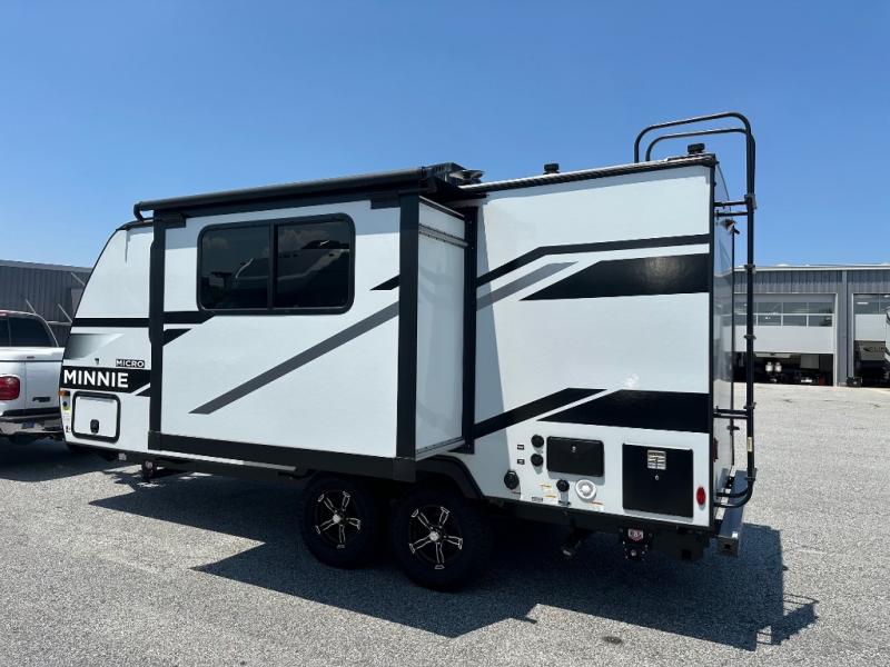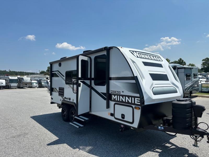 Start out on your boundless journey in one of these Winnebago Industries Towables Micro Minnie travel trailers! Towing is made simple with the 7' width to keep your Micro Minnie in your rear-view mirror. They don't lack in features either although they are compact in size. The spacious galley including a sink, refrigerator, a cooktop, and even a convection microwave oven allows you to cook without compromise. You will not only enjoy the entertainment found indoors with a Smart TV, a JBL premium sound system and Aura Cube high performance mechless media center, but outdoors you will also enjoy the JBL premium speakers and a power awning with LED lighting. Each model also comes with flexible exterior storage to make packing quick and easy, a 200-watt solar panel for off-grid camping, and Dexter TORFLEX torsion stub axles for smooth towing!