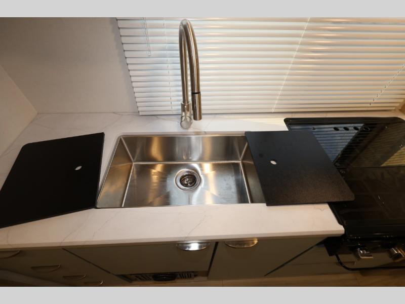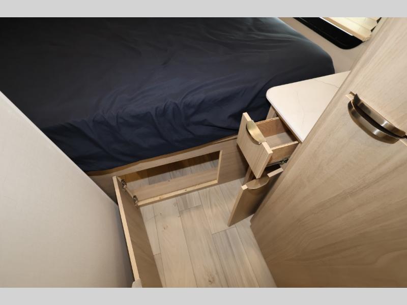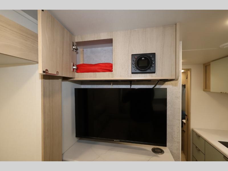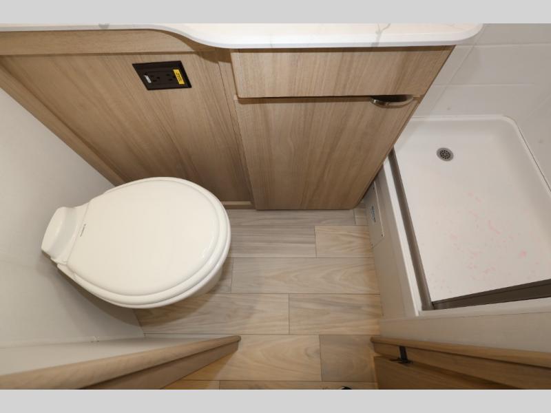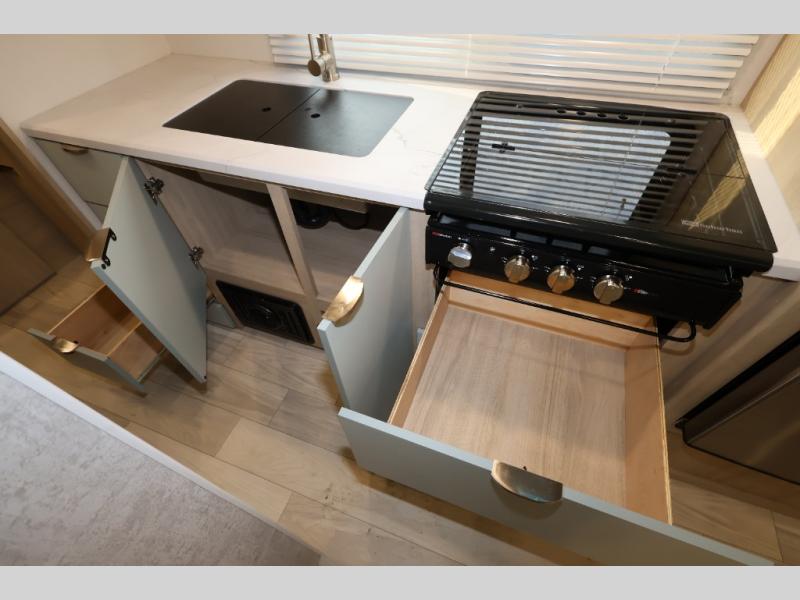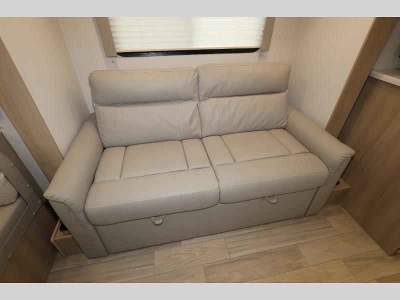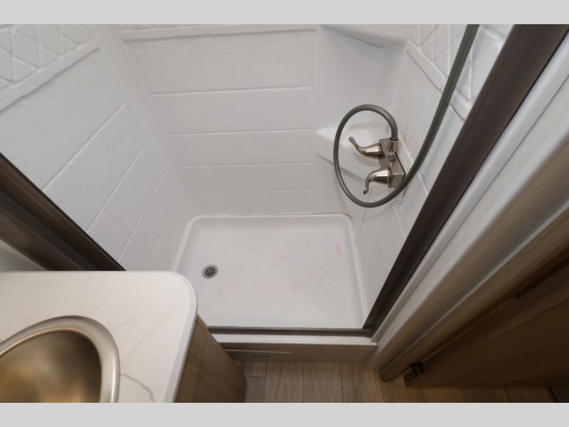 This is a perfect couples trailer as well as family RV if you utilize the furniture as sleeping space! The rear 32" x 74" dinette is a great place to enjoy your meals, play some card games, and even transform into an extra sleeping space for one. You can take an afternoon nap on the EZ Glide Sofa Sleeper or watch your favorite movie on the Smart TV if mother nature rains on your parade. Start each morning feeling fresh after sleeping on the 54" x 74" full bed and enjoy cross ventilation from the windows on both sides. In the evening, relax outdoors under the 16' power awning with LED lights.