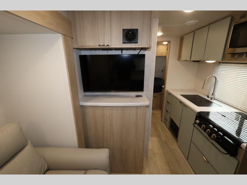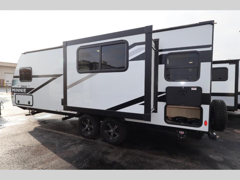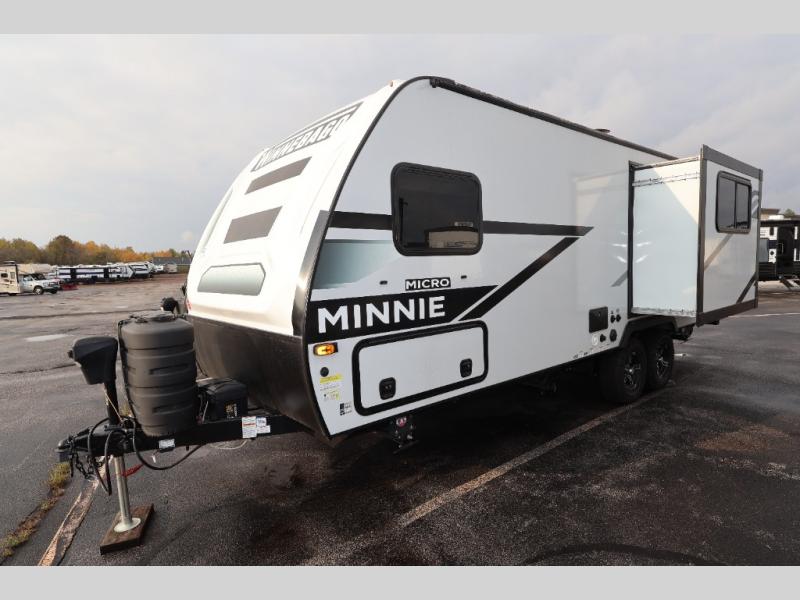 Start out on your boundless journey in one of these Winnebago Industries Towables Micro Minnie travel trailers! Towing is made simple with the 7' width to keep your Micro Minnie in your rear-view mirror. They don't lack in features either although they are compact in size. The spacious galley including a sink, refrigerator, a cooktop, and even a convection microwave oven allows you to cook without compromise. You will not only enjoy the entertainment found indoors with a Smart TV, a JBL premium sound system and Aura Cube high performance mechless media center, but outdoors you will also enjoy the JBL premium speakers and a power awning with LED lighting. Each model also comes with flexible exterior storage to make packing quick and easy, a 200-watt solar panel for off-grid camping, and Dexter TORFLEX torsion stub axles for smooth towing!