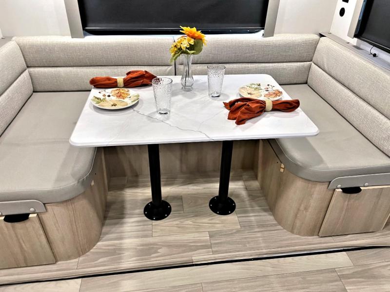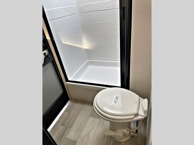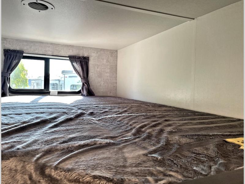 It will be easy to enter and exit this travel trailer with the dual entry doors! One of the entrances leads into the main living area by the front queen bed and the fully equipped kitchen while the second entry door leads directly into the rear corner bathroom which has a 30" x 36" shower to rinse the sand out of your hair. The kiddos will get a good night's rest on the corner 48" x 74" bunk beds with an exterior strutted door by them, and you can even transform the 72" sofa slide with table into an extra sleeping space. The sofa could also be switched out for optional theater seating or an optional U-shaped dinette. Store all of your outdoor gear in the exterior pass-through storage area too!