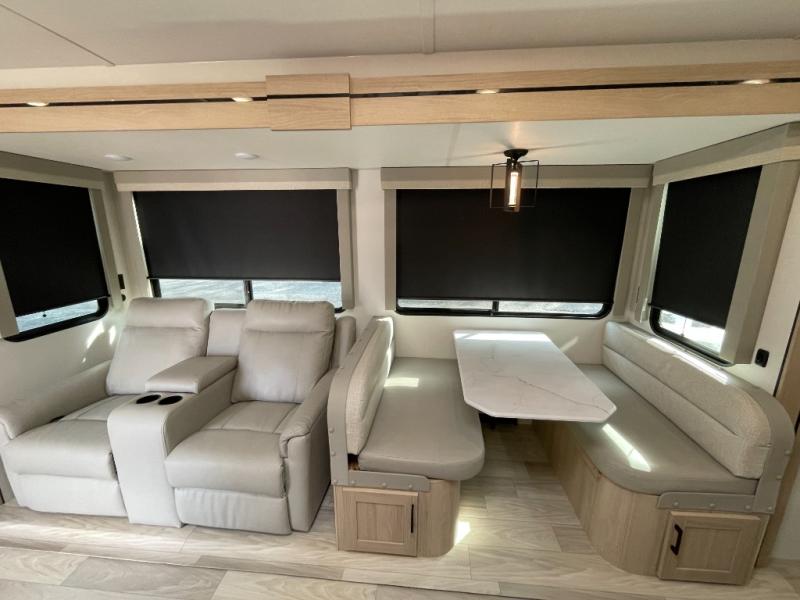The private bedroom ensures a restful night’s sleep, while the rear bath adds everyday convenience, keeping life on the road comfortable and efficient. Winnebago’s reputation for quality materials and construction is evident throughout the Voyage, giving you confidence that this travel trailer is built to last.