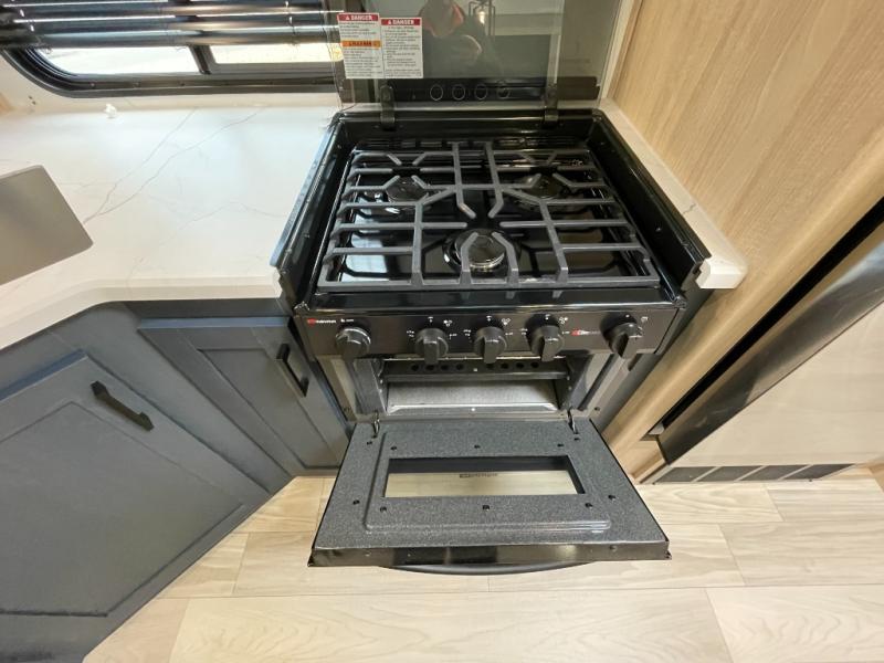 Inside, you’ll find a well-designed kitchen with plenty of counter space, smart storage, and room to prepare meals just like at home. The living area offers flexible seating and a layout that invites relaxation after a day of outdoor fun. Large windows throughout the coach bring in natural light and connect you with the scenery outside, making every destination feel like part of the experience.