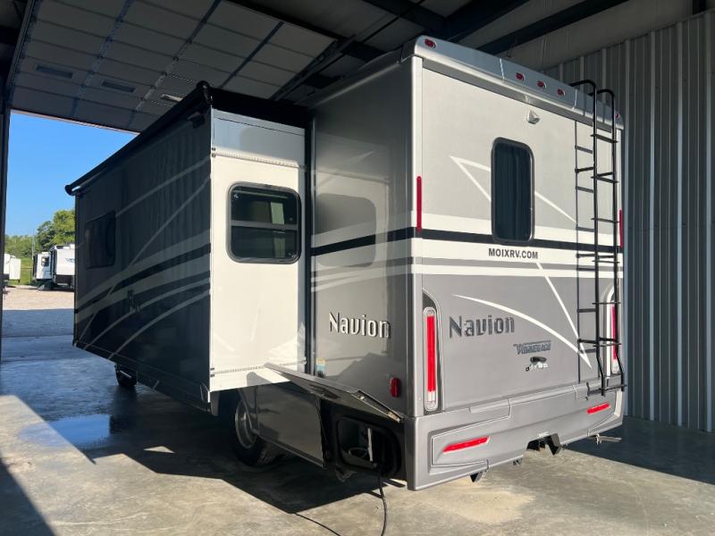 With the Winnebago Navion Class C diesel motorhome, campsite setup is made easier with a powered patio awning with LED lights and Bluetooth control that you can control with a smartphone app, a slide out that is easily moved outward with a push of a button, and your sleeping accommodations are flexible with your activities. The Mercedes-Benz Sprinter chassis, the turbo-diesel engine, the Adaptive ESP technology and the hydraulic brakes with ABS, are a few reasons you will love driving this coach anywhere, plus all the cab conveniences. The interior offers laminate countertops and vinyl flooring throughout for easy care, cabinets with accent lighting, toe kick lighting to help when your hands are full, and charging stations for your electronics. Choose a quieter, more comfortable ride with the SuperShell sleeper deck, and start making plans for years of traveling in your own Navion!