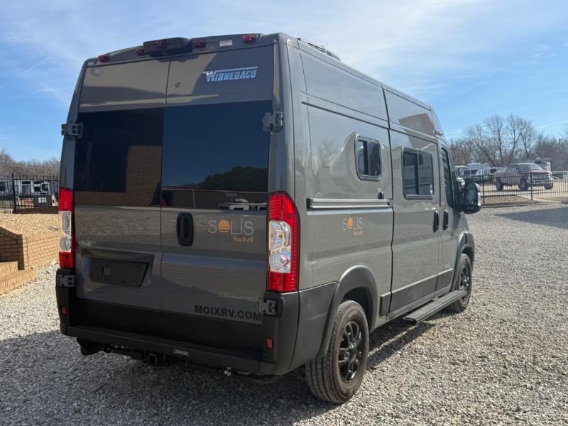 If you want the versatility for your backcountry excursions, and the ability to navigate urban areas, then you need one of these Winnebago Solis Pocket Class B gas motorhomes! A Ram ProMaster 3.6L V6 gas engine with 280HP and a 9-speed automatic transmission power these units to your greatest adventures. Some cab conveniences you will appreciate while driving include a radio/rear view monitor system touch screen, pedestrian automatic emergency braking system, and captain chairs that can slide/swivel/recline and have adjustable headrests. Zippered window coverings give you extra privacy and the heavy duty vinyl flooring throughout is sure to hold up through all of your adventures. A rod and privacy screen is provided for the rear annex to hang your wet clothes or even use as an outdoor shower. Navigate your next adventure with a Solis Pocket!