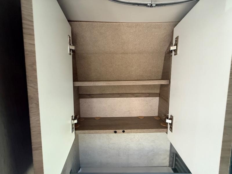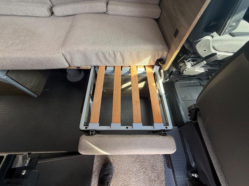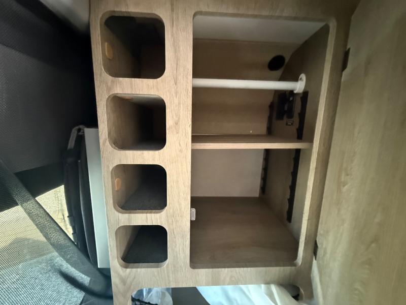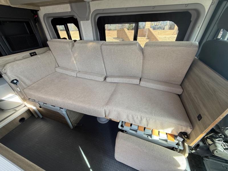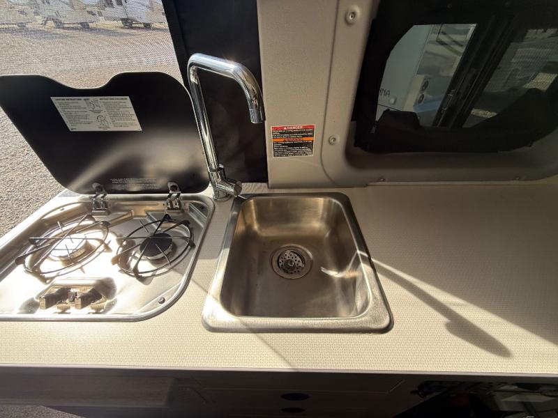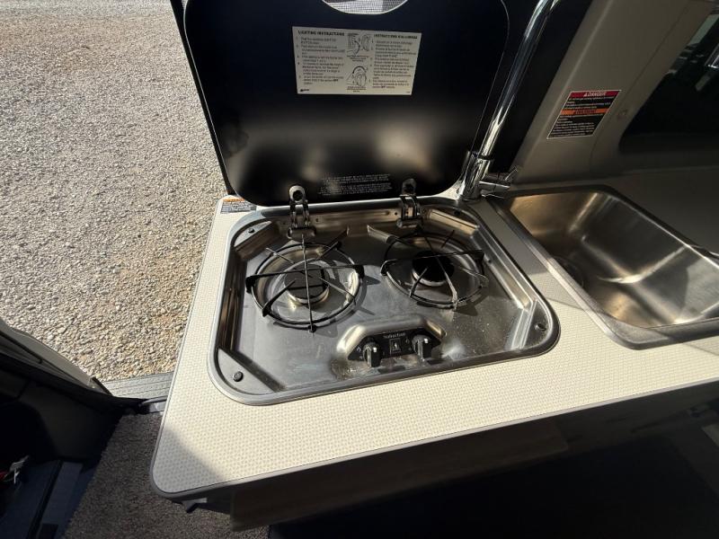This camper van is perfect for independent travel or if you've got a camping partner to take along with you! The convertible dinette bed can transform into a twin-size bed for one or a double-size bed for two. The three seating modes include a belt mode, sofa mode, or lounge mode for even more comfort. You will find all you need in the kitchen to prepare meals each day, including a two burner range with a glass cover for more counter space and a 3.0 cu. ft. 12V single door compressor-driven refrigerator/freezer for food storage. There is a shower with a wall surround in the rear wet bath, along with a removable cassette toilet, a medicine cabinet with a mirror, and a wardrobe cabinet with added storage. This space could also be used as a mudroom after a day of exploring, or utilize it for storage!