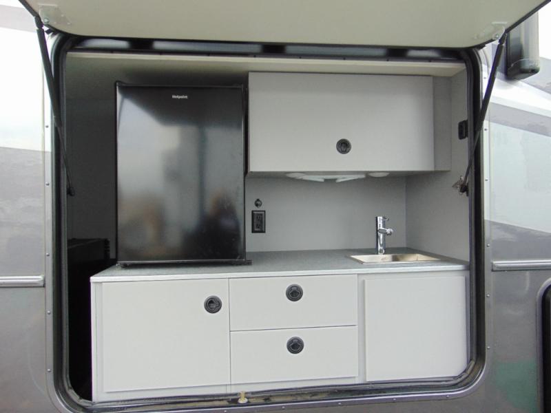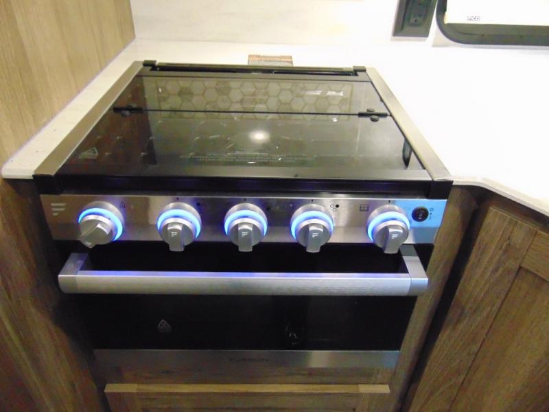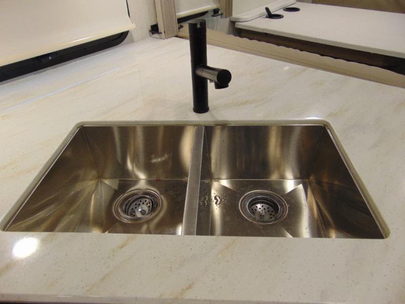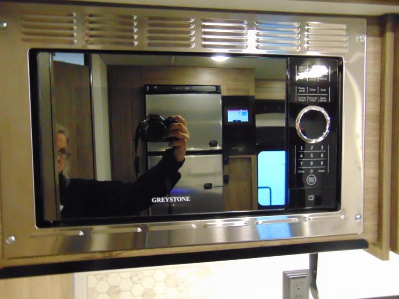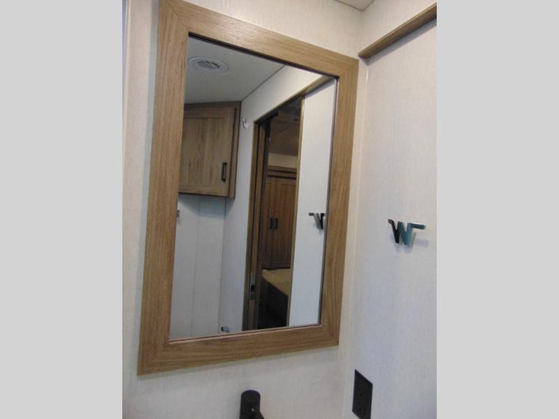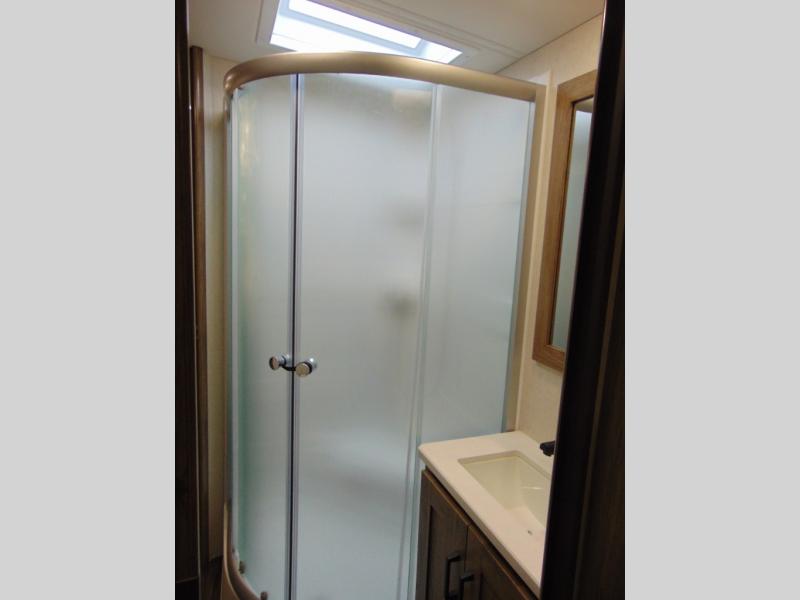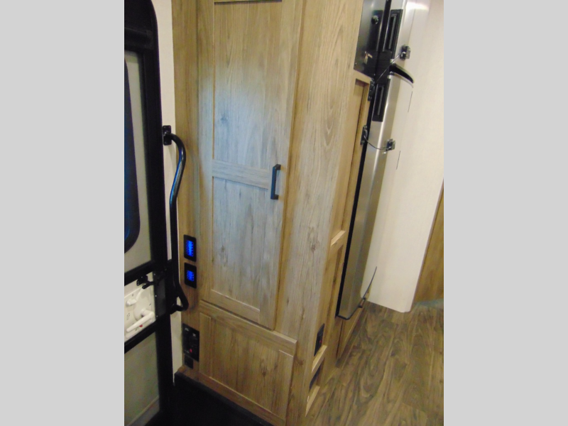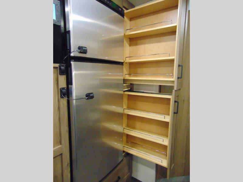 There are bunk beds within the full-wall slide for kids or guests, and the spacious dual entry bath is right across the hall for convenience. The rear bedroom includes a sliding door for privacy, a wardrobe to hang your clothes, plus additional storage and space to add an optional bedroom TV. You can make all your meals with the appliances provided, and dine at the dinette with a Hi-Lo table. The furniture also doubles as extra sleeping space, and you might like to add the optional StudioLoft bed.