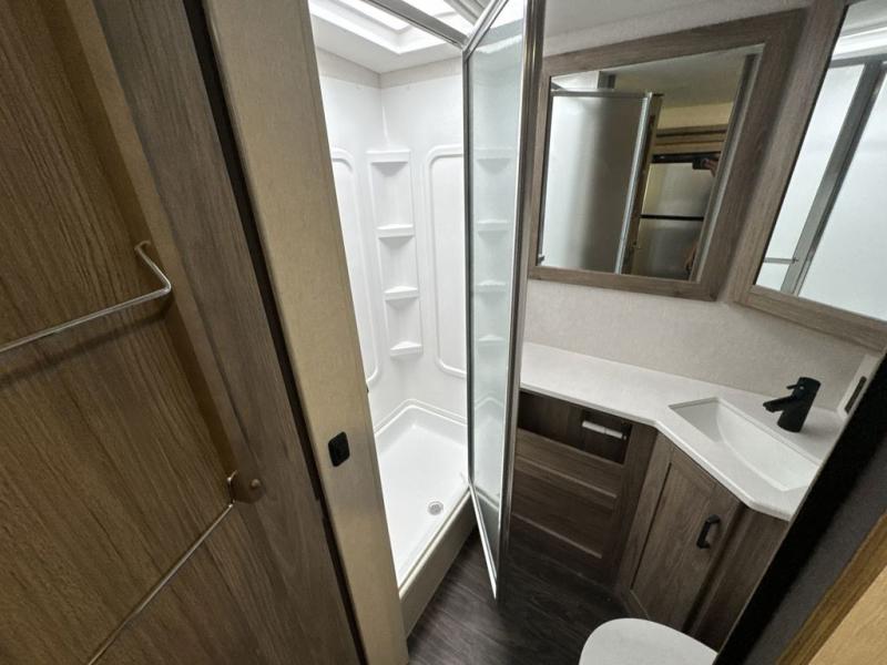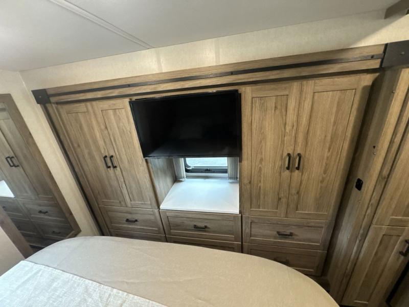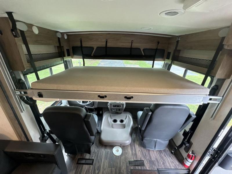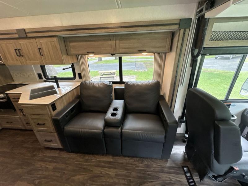 Head to your favorite destinations with this motorhome! You can travel with your spouse or bring an extra guest or two when you add the optional StudioLoft 50" x 80" powered bed above the cab. The 40" x 66" sofa bed can also transform into an extra sleeping space but if you don't need it then you can switch it out for the optional theater seating. Enjoy delicious home cooked meals while on the road with the three burner cooktop or head to the exterior kitchen to breathe in some fresh air while you cook. Eat your meals at the 42" x 70" dinette with Hi-Lo table and freshen up each morning in the full bathroom featuring a 26" x 38" shower. The rear private bedroom has a 72" x 75" king bed to lay your head on at night and wardrobes on either side of a storage area with a location for an optional TV to be added!