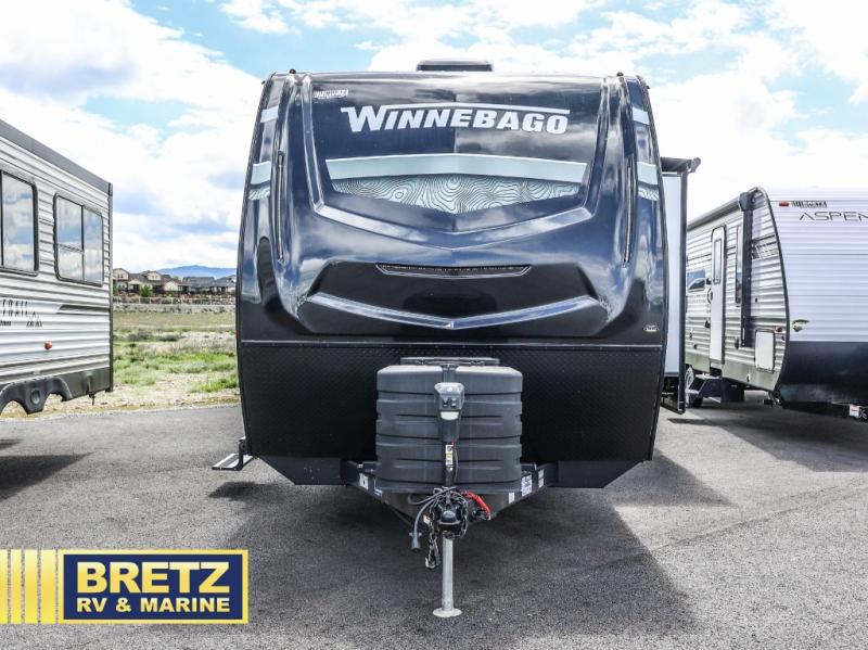 Each Voyage travel trailer by Winnebago includes a 200-watt solar panel with a 30 amp-charge controller and resettable breaker so you can camp off-grid. Also included is a heated and enclosed underbelly with radiant foil insulation for four seasons of travel, 2" thick FILON® MAX fiberglass sidewalls and a painted gel coat front cap with integrated LED lighting, a walk-on roof, plus power stabilizers for easy setup and stability. The interior offers many comforts of home, large windows, LED ceiling lights, ductless flooring throughout, and full kitchen amenities. No voyage is better than the one taken in a Voyage travel trailer! Come choose your model today!