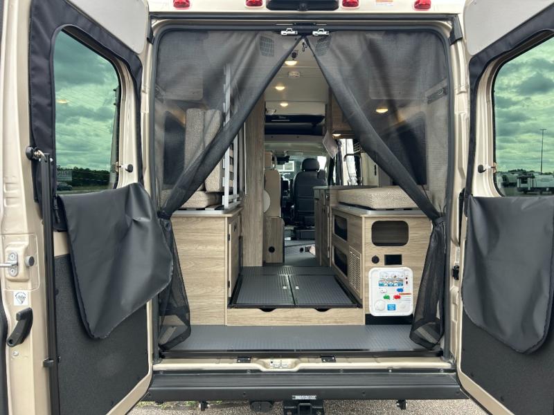 Each Solis Class B gas motorhome by Winnebago sits upon a fuel-efficient Ram ProMaster chassis with a 3.6L V6 engine to power your adventures. You will love the cab conveniences that make each trip enjoyable, like the radio/review monitor system touchscreen and the crosswind assist to keep you steady on the road. Some of the hassle-free amenities you will appreciate are the exterior wash station, the Eco-Hot water system, and the water center control panel located inside the right rear door. Head indoors to find heavy-duty vinyl flooring throughout, a laminate countertop and a stainless steel sink in the galley, plus tinted coach windows for added privacy. The Solis also features off-grid capabilities with its two deep-cycle Group 31 batteries and 220-watt flexible surface solar panel with a controller. Adventures awaits in the Solis Class B gas motorhome!