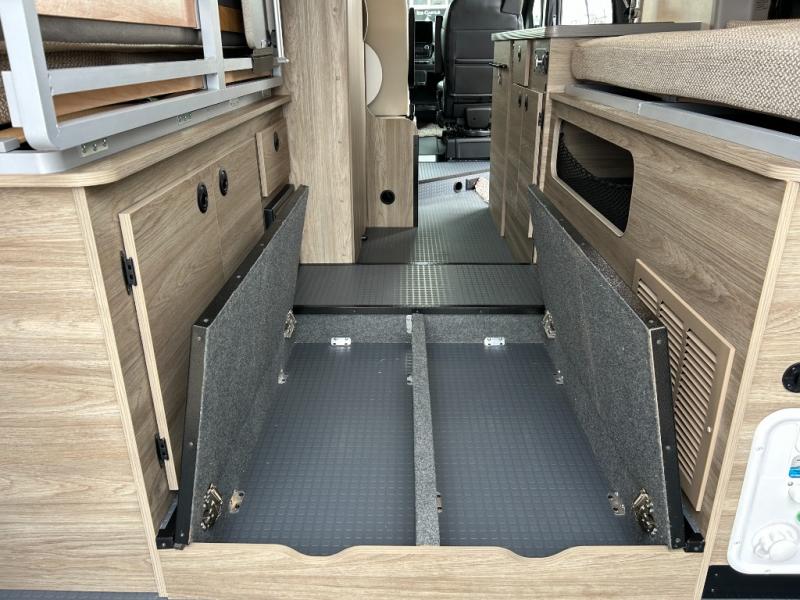 This camper van with an L-track storage system is perfect for those needing more storage space for their hiking and biking gear. You can stay powered up with the 2,800-watt gas generator, and there is a 13,500 BTU air conditioner with directional ducts and dial control that will allow you to come inside to cool off after a trail ride. A Murphy+ bed comes standard, and any guests that tag along can sleep in the pop-top sleeping area! If you choose to remove the pop-top, you'll enjoy the deluxe powered ventilator fan instead. You'll find the wet bath to come in handy when you want to clean up, and the dinette seating with a removable pedestal table will provide a place to enjoy your dinner at.