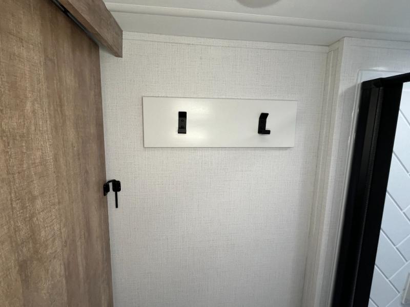 This fifth wheel with an open concept kitchen and living area is sure to feel just like home! You can relax with friends and family around the U-shaped dinette or on the tri-fold sleeper sofa, and there is a TV/radio in this space for entertainment. The rear private bunkhouse includes double-size triple bunks and a wardrobe for your guests' things, and you'll have your own wardrobes up front in the private bedroom. There is also a queen bed here and dual nightstands to keep your phone and glasses close by. And don't overlook the exterior with its 20' electric awning and LCI Solid Steps!