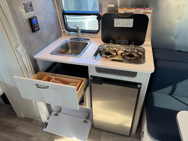 The lightweight, easy-to-maneuver Bambi travel trailer by Airstream is your ticket to outdoor fun and adventure. The panoramic front windows with blackout shades will provide natural lighting during the day, and privacy at night, and the seamless vinyl flooring will be easy to keep clean. Each model includes an efficient A/C with a heat strip, roll top overhead cabinets, and Performatex dinette cushions that are stain resistant. You will appreciate the 12V USB-A and USB-C ports to keep your devices charged, and the 24" 12V HDTV will provide entertainment when the weather isn't cooperating. The Bambi travel trailers also include a powered hitch jack with a light, roller shades, and an optional solar charging system for off-grid capabilities!