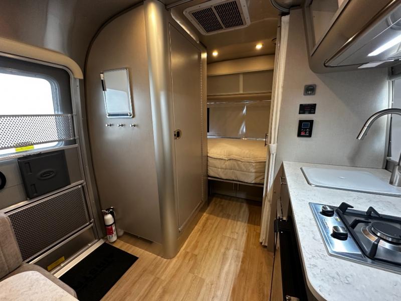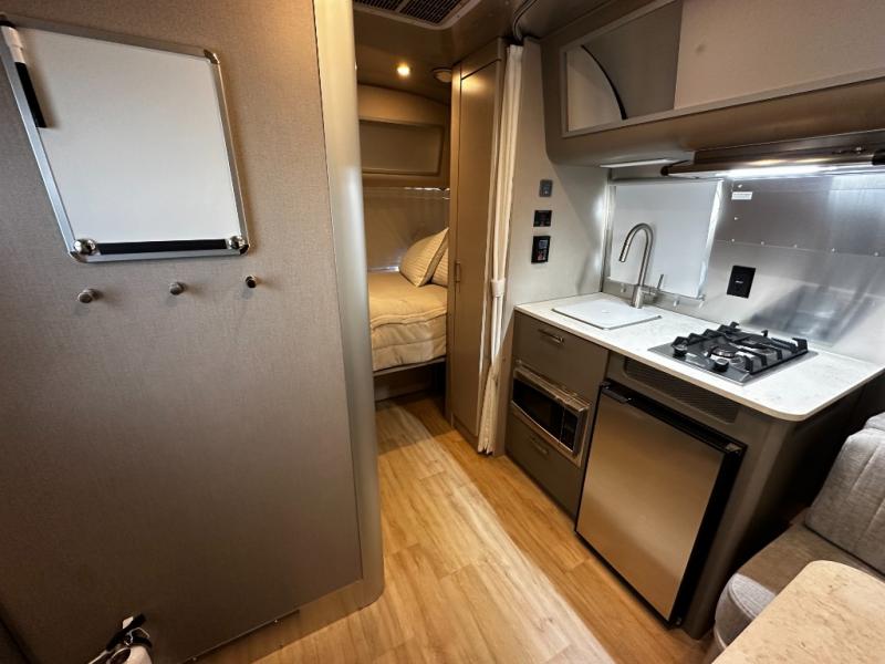 The Caravel 16RB captures everything that makes Airstream iconic. From its aerodynamic aluminum shell to its handcrafted interior, this model is built to turn every trip into a memorable journey. The compact 16-foot floorplan maximizes space with clever design, offering a cozy rear bedroom, a fully equipped kitchen, and a surprisingly spacious wet bath. Every inch reflects Airstream’s attention to detail—sleek cabinetry, stainless-steel appliances, panoramic front windows, and LED lighting make this trailer feel open and modern.