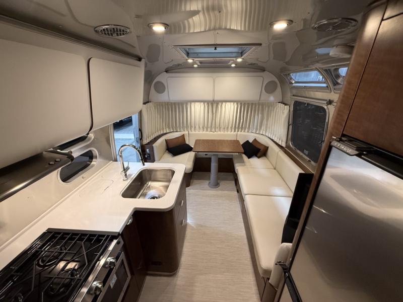 Each one of these Airstream Globetrotter travel trailers are built to last a lifetime with a structural frame and durable fabrics! European inspired and American made with a minimalist design that includes crisp, clean lines and delicate neutral colors for a sophisticated beauty with soft curves, panoramic windows, wrap-around upholstery, and backlighting. The HITCH seating upholstery has a fine woven texture, a subtle metallic tip print, and a distinctive two-tone feel, as well as durable and stain-resistant. You won't have to go far when charging your electronics thanks to the strategically placed USB and 110V outlets throughout. The QuietStream ducted A/C system can quickly cool the inside and also has a heat pump to pull ambient heat from the air. Come choose your favorite model today!