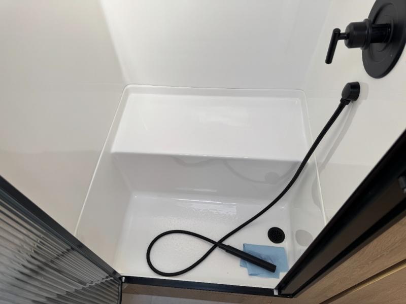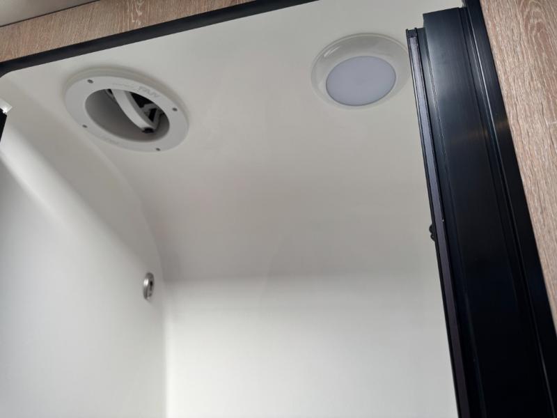 This Pottery Barn Special Edition travel trailer is completely focused on providing you with an iconic camping experience! The ready-to-camp accessories make this trailer extremely functional. Some of those features are the Pottery Barn 16-piece dinnerware set, 20-piece flatware set, 4-piece set of marble cheese knives, folding bistro table, and set of two folding chairs. The Fusion touchscreen stereo with surround sound and subwoofer will help you set the mood for relaxing, and the Pottery Barn colossal handknit throw will help you cozy up on the couch. In the private bedroom, you'll find canvas storage bins that you can use to keep all of your belongings easily accessible, LED reading lights, a wardrobe with hanging bar, blackout pleated curtains for the panoramic windows, and an LED HDTV for entertainment. The residential bathroom is quite impressive with its sconce lighting, removable Moen handheld shower head, reeded glass shower door, retractable clothes line, and round mirror with two-shelf medicine cabinet.