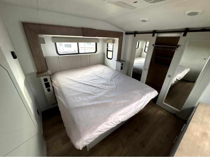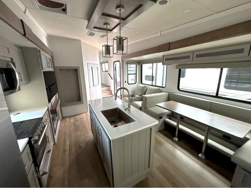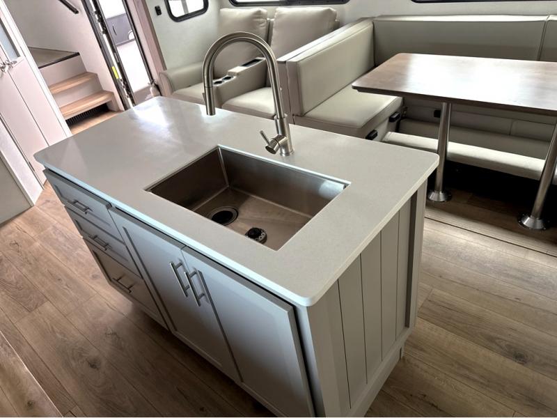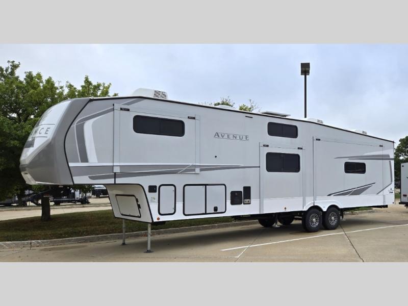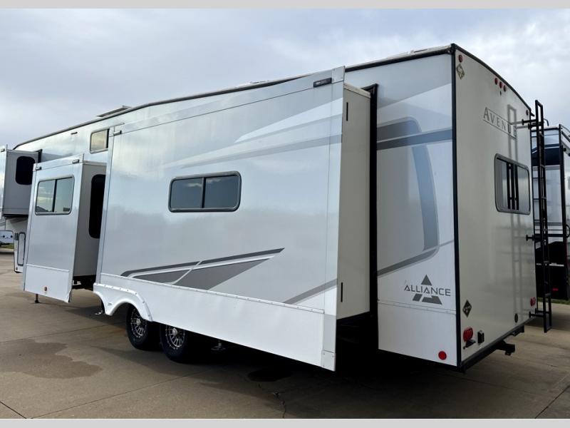 With any Avenue fifth wheel or travel trailer by Alliance RV, you will enjoy more interior space provided by the 8' 5" wide-body construction, and a long list of luxury features. Each is built with Azdel composite sidewalls both inside and out, along with a PVC roof for added strength. There are innovative storage solutions that include hidden storage behind the TV, within end tables and ottomans, and more. Since these units feature no carpet throughout, cleaning will be easier than ever, and there are flush floor slides throughout for seamless living spaces. The Avenue also comes with the OTG Solar Package with a 400 watt solar panel, inverter prep, multiple outlets, and more to keep you charged up!