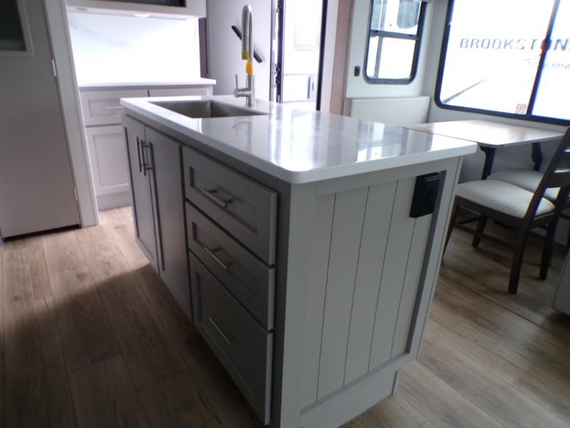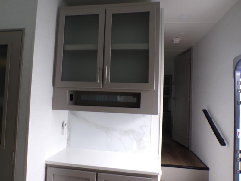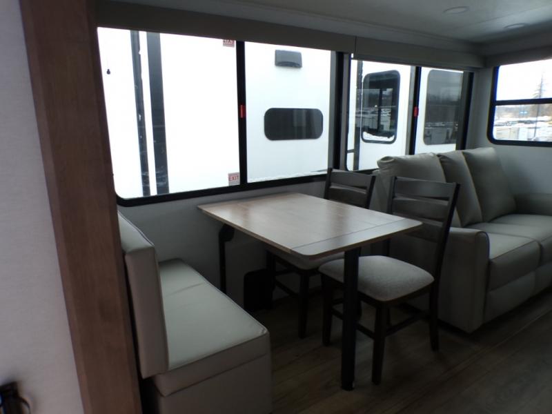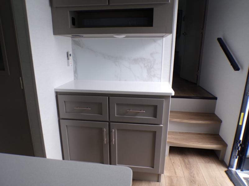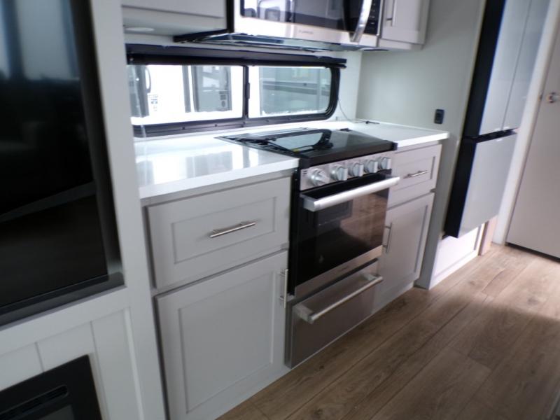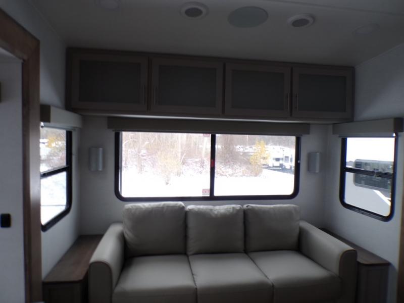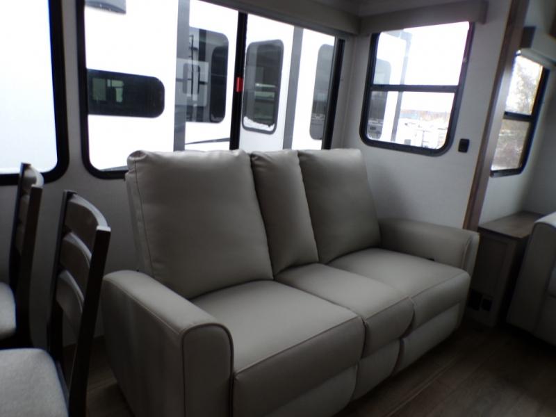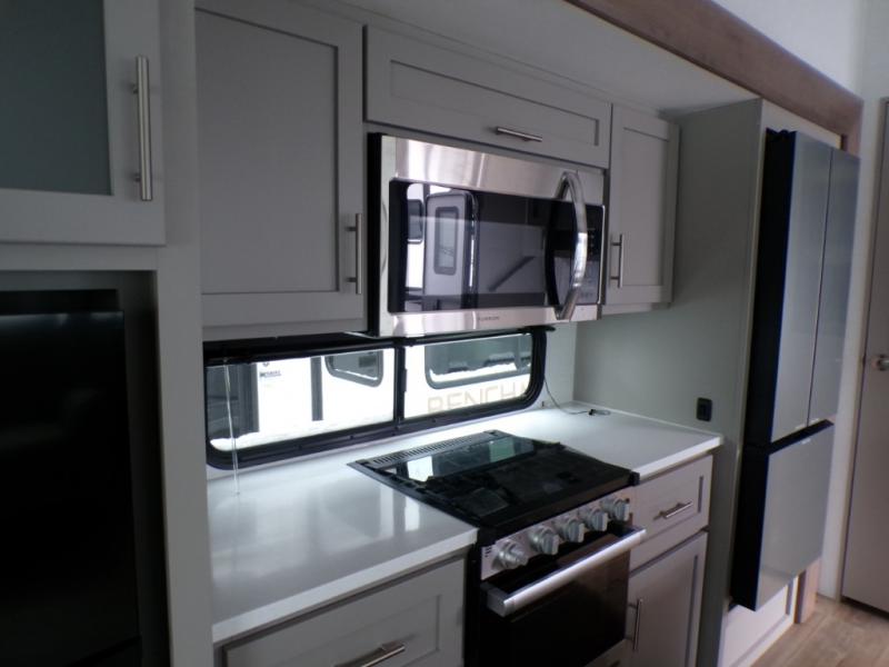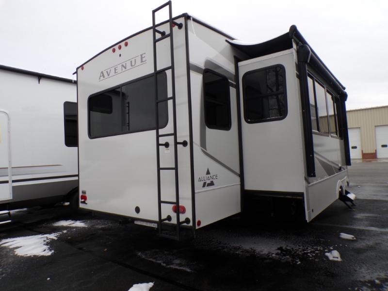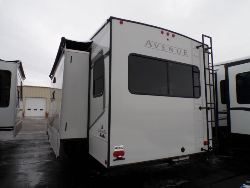 A benchmark chassis creates a space saver upper deck with each one of these Avenue All-Access fifth wheels by Alliance RV! The 101 in. wide-body construction gives you more room to walk around and the flush slide out floors throughout prevent any tripping. There are Azdel composite sidewalls inside and out, and a seamless fully walkable PVC roof for extreme durability and zero maintenance. You are sure to love no carpet throughout making each Avenue All-Access easy to clean and allergen free, not to mention pet friendly. You can maximize your space throughout with innovative storage solutions like the hidden storage behind the TV, inside the end tables, ottoman, and dinette chairs. These units also include the OTG Solar Package with a 200 watt solar panel, 15 amp MPPT charger, multiple outlets, and more to keep you powered up!