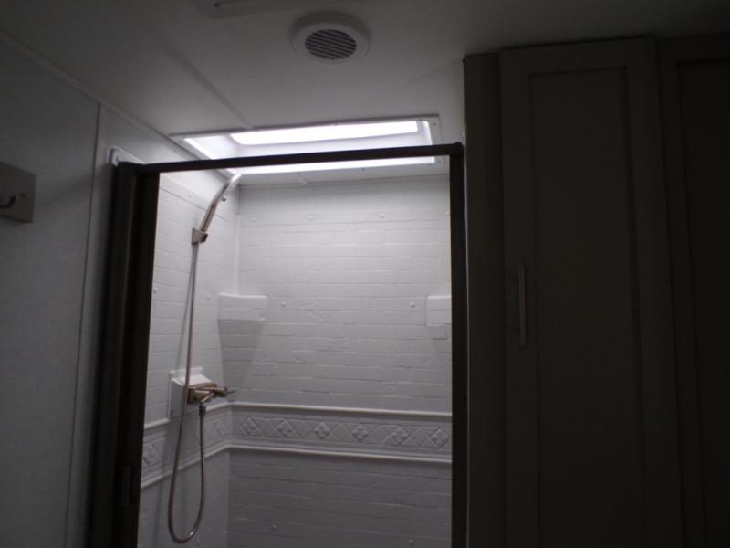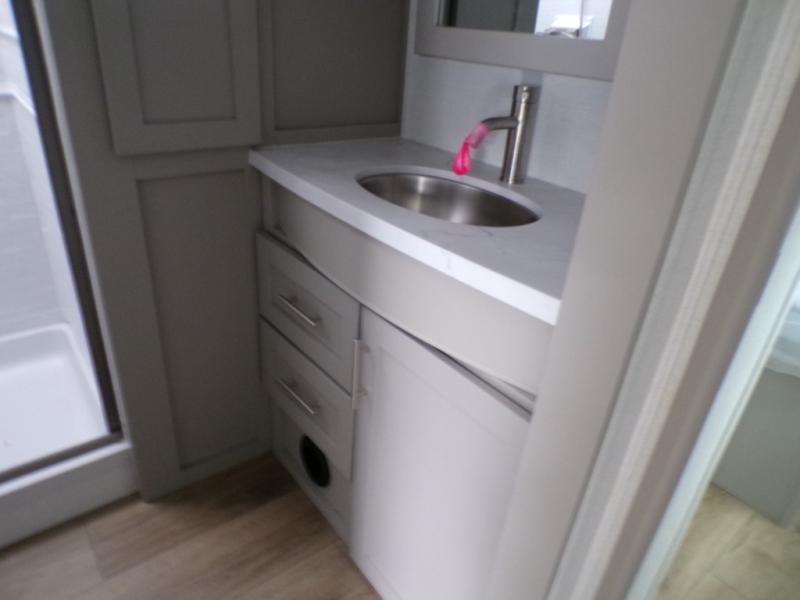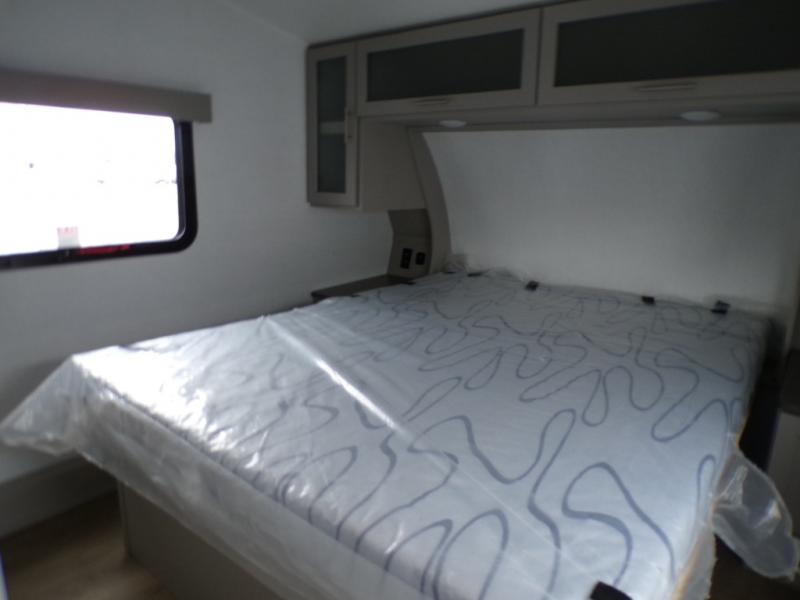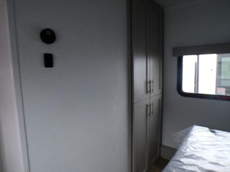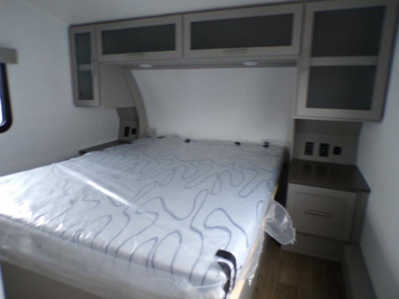 For the couple that enjoys adventures, this rear living coach has everything you need to travel comfortably and take along a couple of friends! The front private bedroom has a queen bed with nightstands on either side for your personal belongings, and a wardrobe to keep your clothes looking nice. Freshen up each morning in the full bathroom with a 30" x 36" shower, and grab a towel stored close by in the linen closet. Now that you're ready for the day, you can head to the kitchen and create a hearty breakfast with the full kitchen amenities. You will appreciate having a 10 cu. ft. 12V refrigerator and three burner cooktop, plus there is a center island with plenty of counter space and a sink to make food prep even easier. Spend your evenings in true relaxation in the dual recliner theater seats across from the swing mount 50" HDTV with hidden storage behind. You will also love the pantry and hutch in the kitchen area for storing all of your dishes and non-perishables. Dine at the floating table with two chairs along with a moveable ottoman featuring storage.