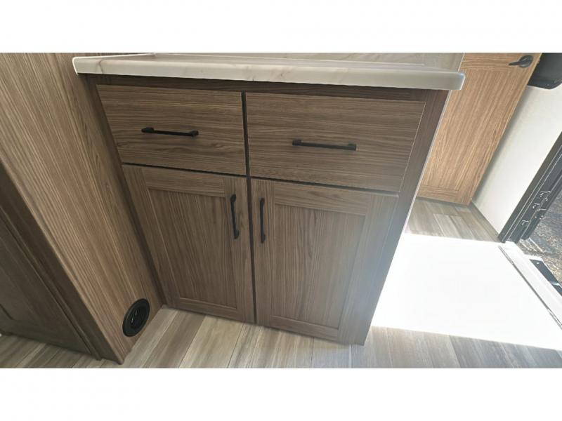 Form and function works together with every one of these Alliance RV Delta travel trailers! They are built with a walk-on roof with a seamless PVC roof covering, Mylar reinforced exterior seals, and a heated and enclosed underbelly to protect your unit in all seasons. The commercial grade vinyl flooring will be easy to clean and the oversized atrium windows throughout let in plenty of natural sunlight. With 62 cu. ft. of drop frame pass-through storage, you can bring along all of your essential camping gear plus it has USB charging for more convenience. There are many at home interior conveniences including a Bluetooth speaker, USB charging throughout, and even a pull-out kitchen trash can. Come find your favorite model today!