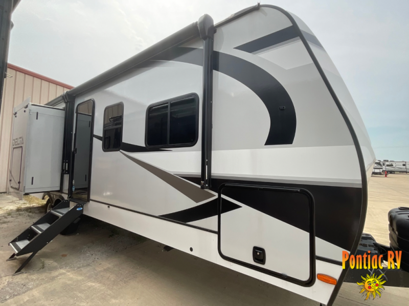 Form and function works together with every one of these Alliance RV Delta travel trailers! They are built with a walk-on roof with a seamless PVC roof covering, Mylar reinforced exterior seals, and a heated and enclosed underbelly to protect your unit in all seasons. The commercial grade vinyl flooring will be easy to clean and the oversized atrium windows throughout let in plenty of natural sunlight. With 62 cu. ft. of drop frame pass-through storage, you can bring along all of your essential camping gear plus it has USB charging for more convenience. There are many at home interior conveniences including a Bluetooth speaker, USB charging throughout, and even a pull-out kitchen trash can. Come find your favorite model today!