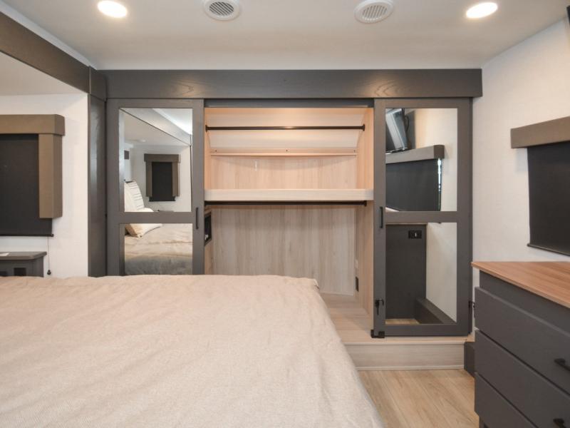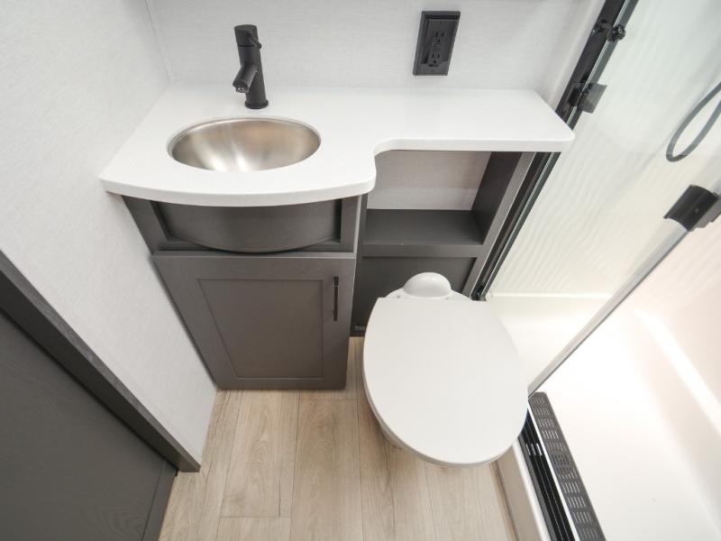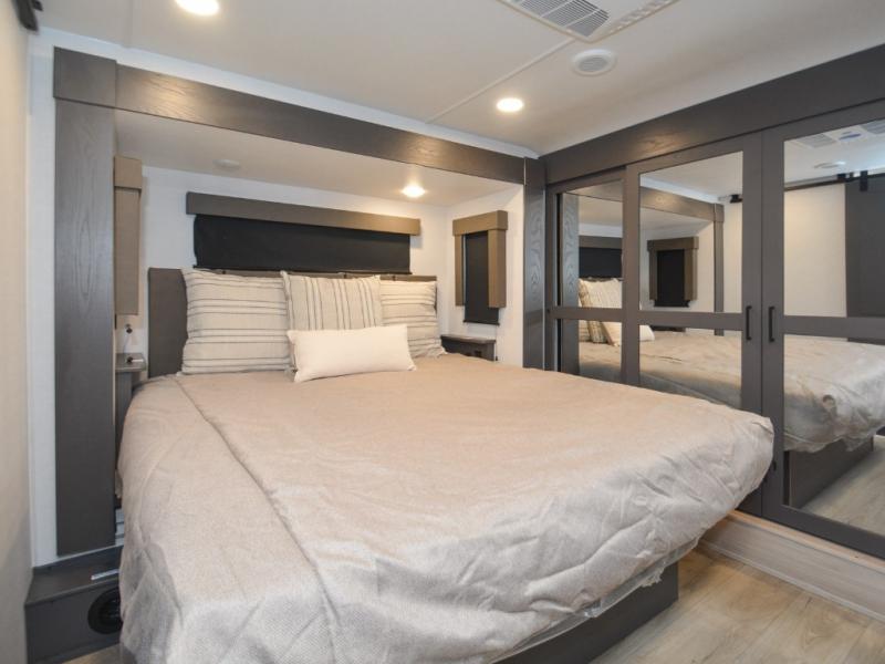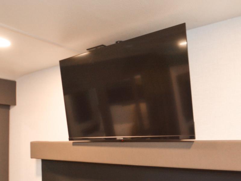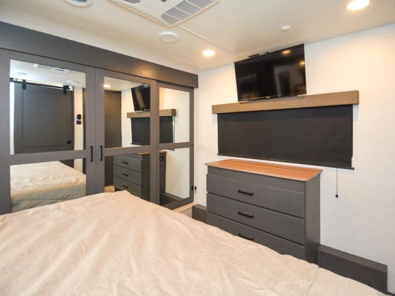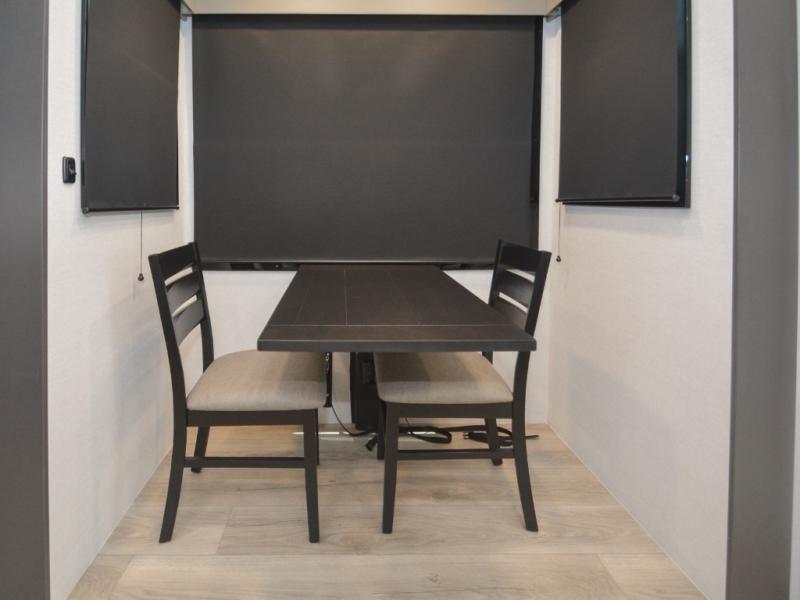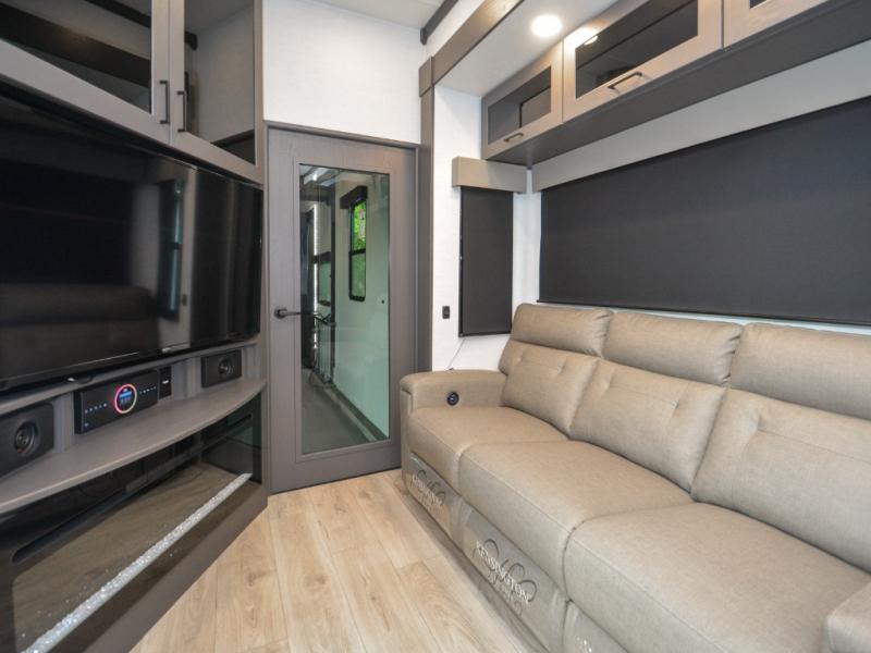 Wake up feeling refreshed after sleeping on the king bed slide inside the front private bedroom and showering in the 48" x 30" shower inside the dual entry bathroom. Now that you're ready for the day, you can head to the kitchen to prepare breakfast on the four burner cooktop then enjoy it at the free standing dinette. The kitchen island with flip-up extensions provides extra space for prep and clean-up. Enjoy your evenings relaxing on the sofa in front of the fireplace while watching your favorite programs on the 50" HDTV.