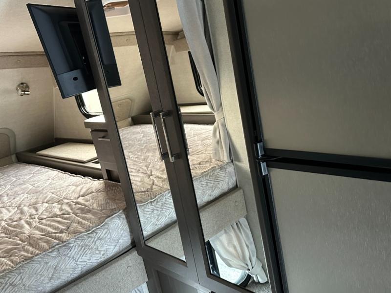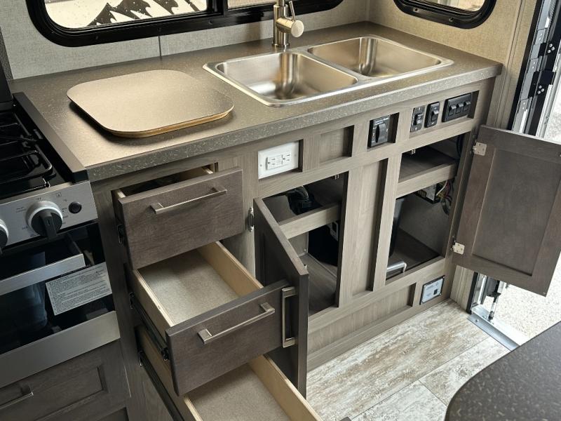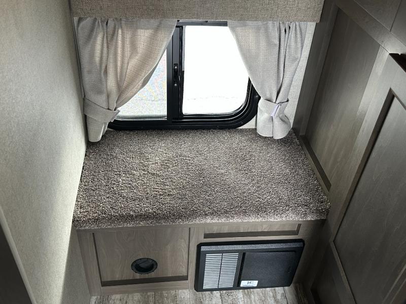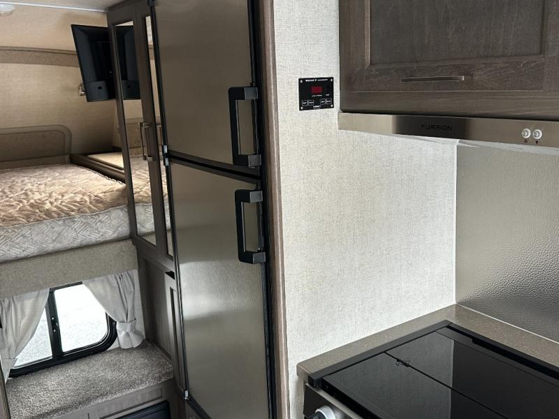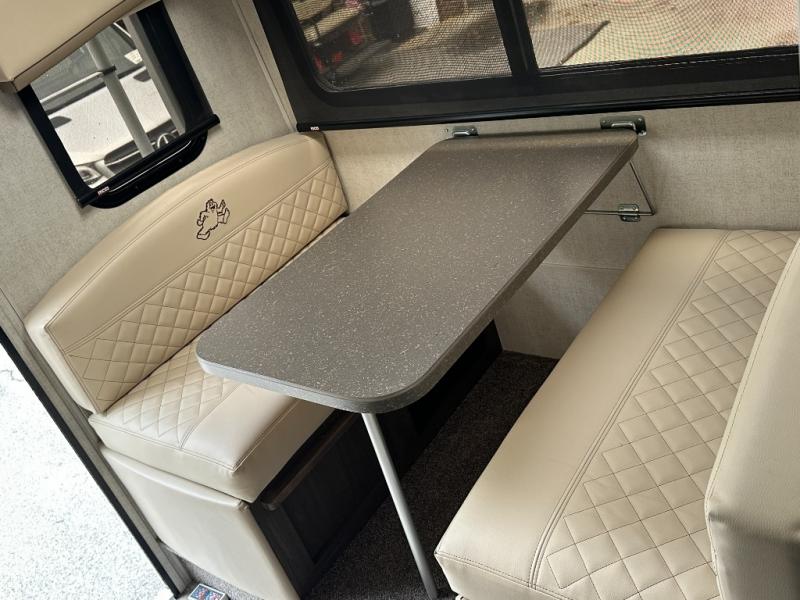 If you're in the market for a spacious truck camper, look no further than this model! Having a full bath on board instead of a wet bath will be super convenient, and the front RV queen bed features a spring filled foam mattress for comfort. This model includes a 7 cu. ft. microwave oven, a three burner cooktop, plus a stainless steel 2-way 6 cu. ft. refrigerator for your perishables. Once the meal is prepared, you can enjoy it at the booth dinette, then play a game of cards. This spot will also double as additional sleeping space if you need it. There is plenty of storage space for your things, including bedside storage cabinets and overhead cabinets!
