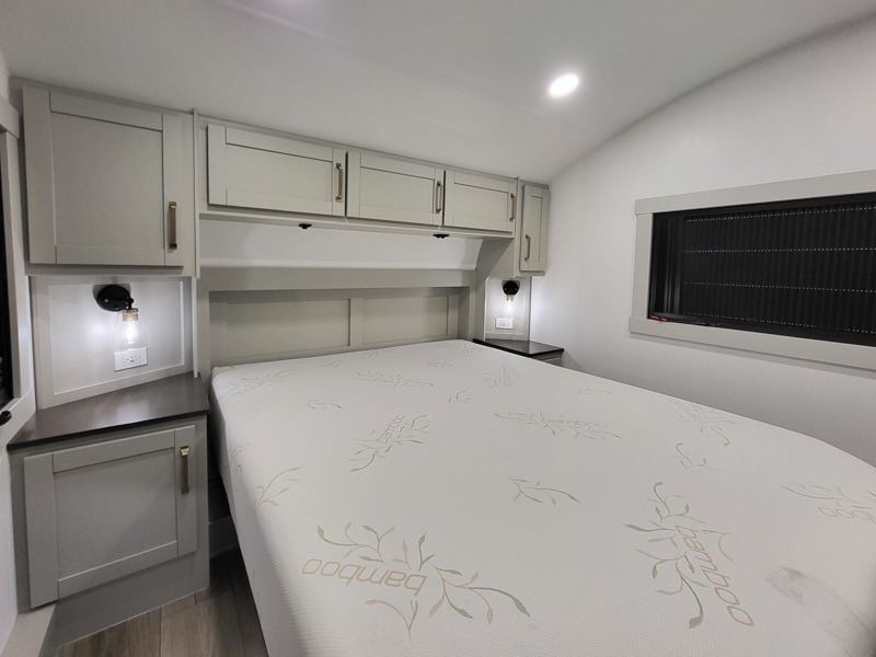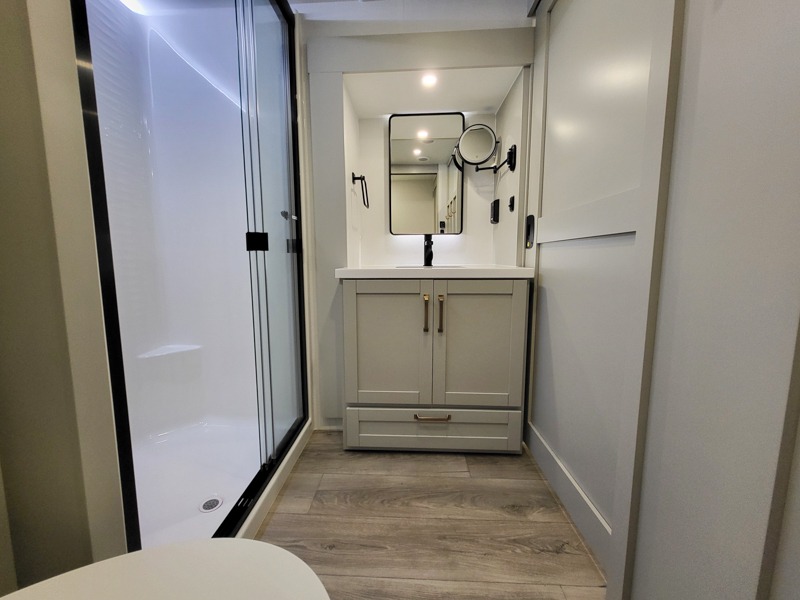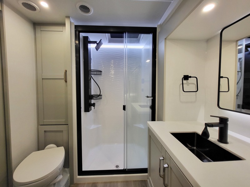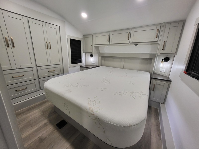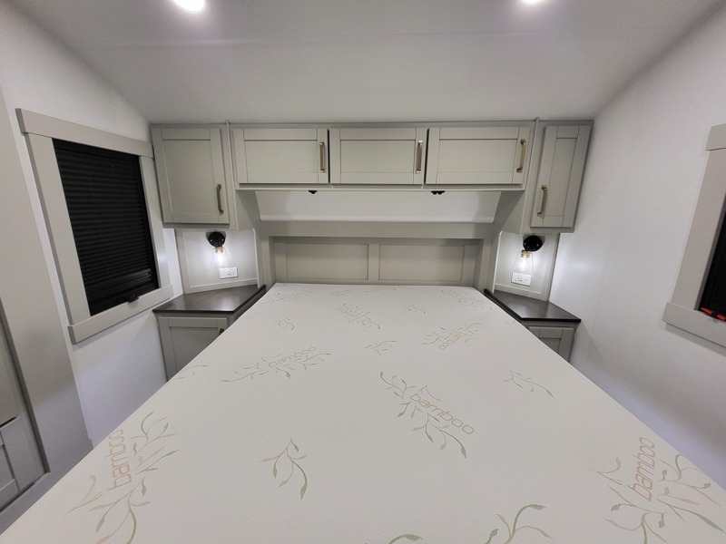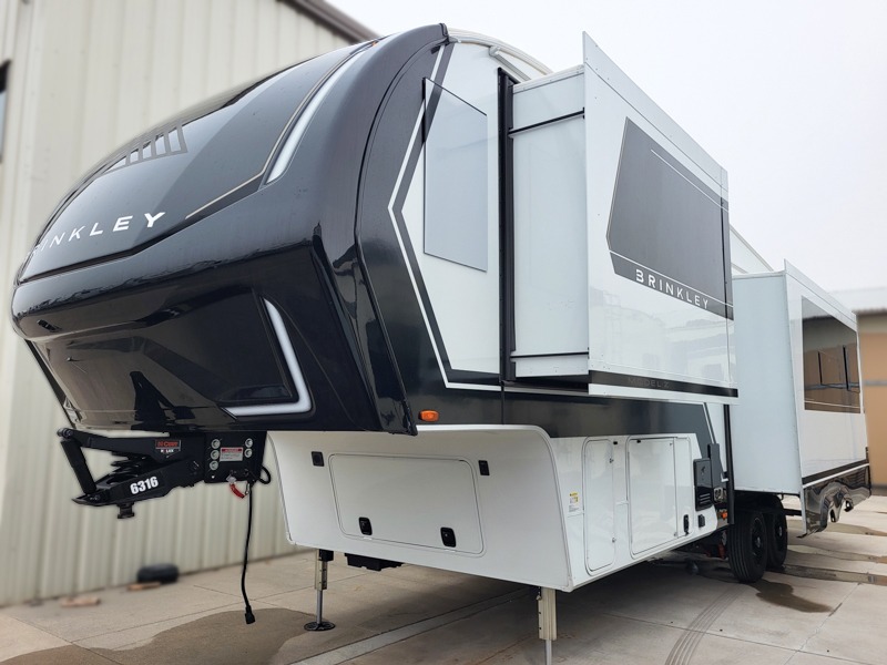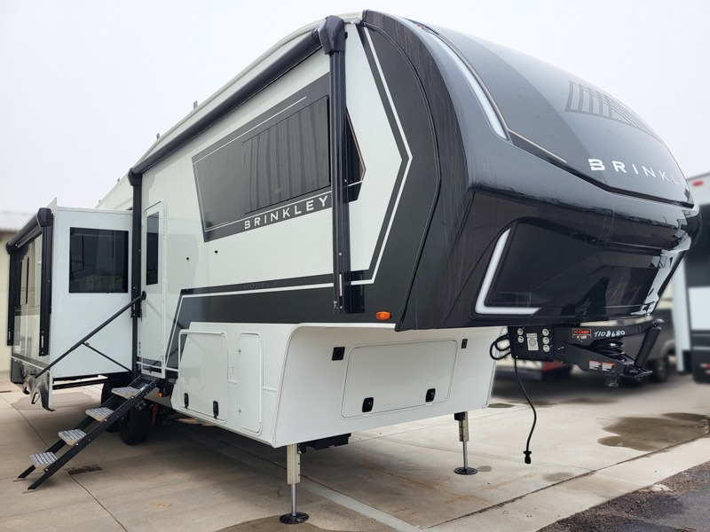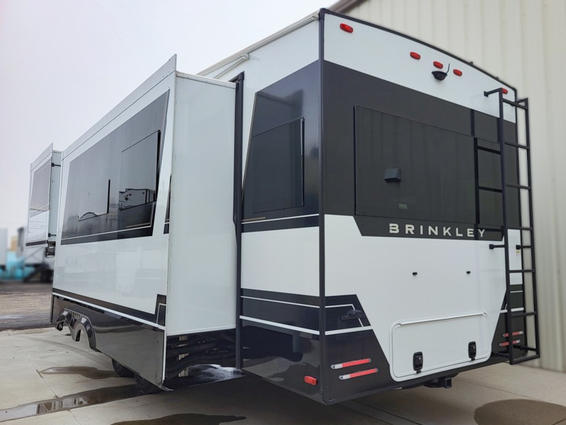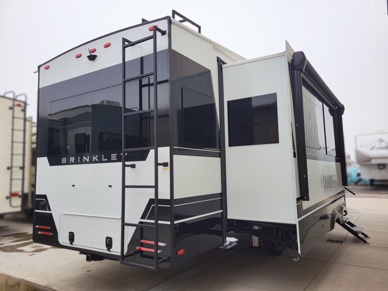 The Brinkley mid-profile Model Z fifth wheels bring you clean lines and an upscale look with plenty of style and exciting new features like the industry first brass plumbing connections. These units also feature an automotive grade front cap, plenty of exterior storage, dual exterior hot and cold showers, and wide stance leveling jacks for easy set up. Residential frameless windows provide a clean look and beautiful views, and ample electrical outlets and USB/USB-C outlets allow all of your electronics and appliances to easily be used and charged.