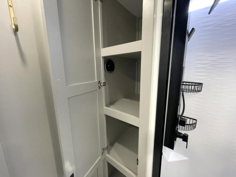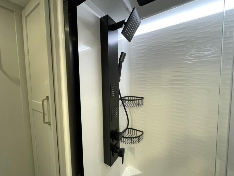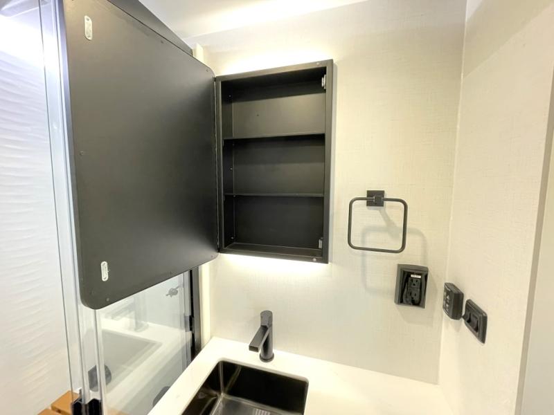 Inside, you’ll find USB and USB-C charging ports throughout, allowing you to stay powered and connected wherever you camp. The lighting, appliance access, and layout are all carefully designed to suit full-time living or luxury weekend use.
