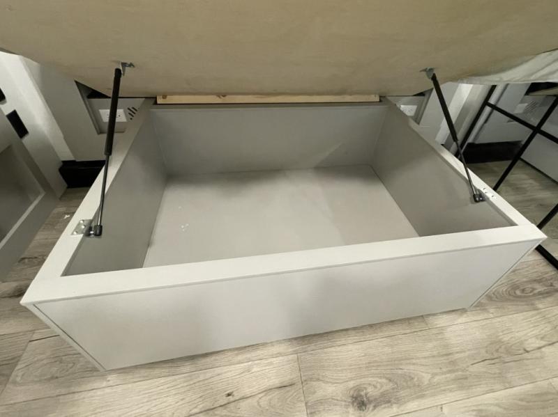 King bed slide (queen optional) with sliding dresser top and hidden storage