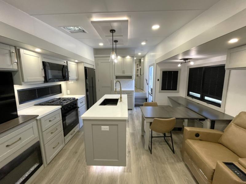 The Brinkley Model Z 3100 delivers high-end residential comfort in a stylish, innovative fifth wheel designed for travelers who want the very best. With features like integrated dog bowls, hidden storage, and a spacious interior layout, this model is perfect for full-timers, weekenders, or anyone looking to upgrade their RV lifestyle.