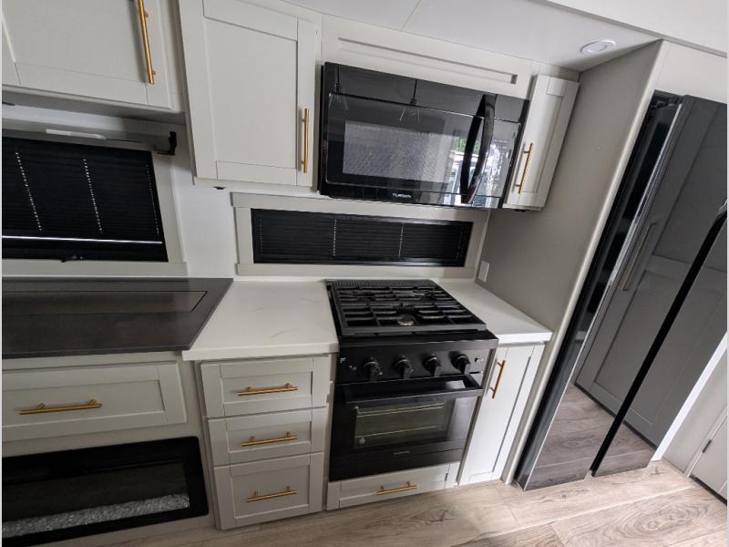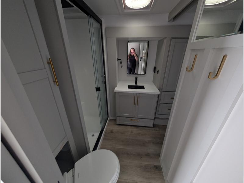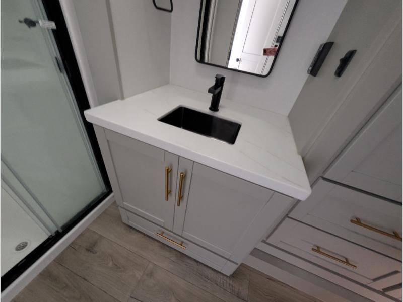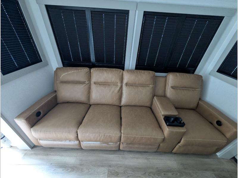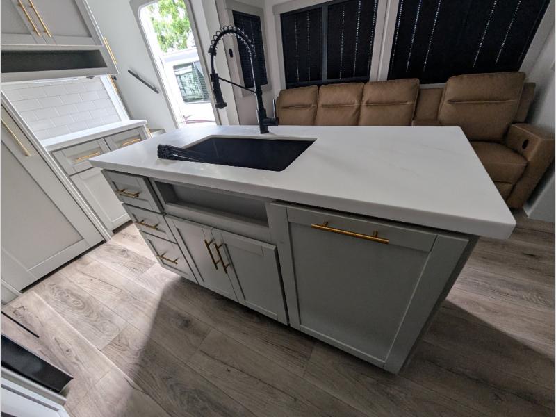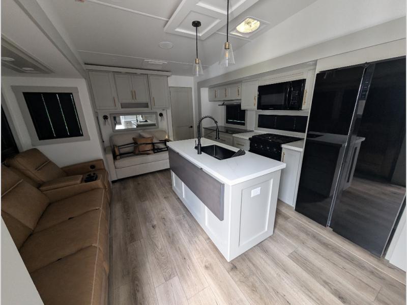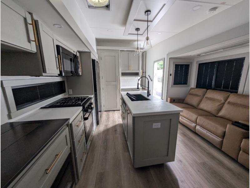 The Brinkley mid-profile Model Z fifth wheels bring you clean lines and an upscale look with plenty of style and exciting new features like the industry first brass plumbing connections. These units also feature an automotive grade front cap, plenty of exterior storage, exterior hot and cold showers, and wide stance leveling jacks for easy set up. Residential frameless windows provide a clean look and beautiful views, and ample electrical outlets and 6 USB/USB-C outlets allow all of your electronics and appliances to easily be used and charged.