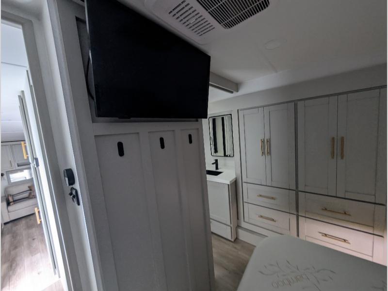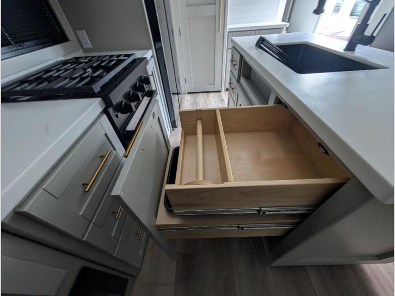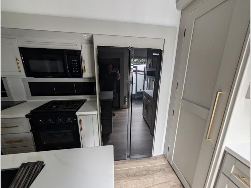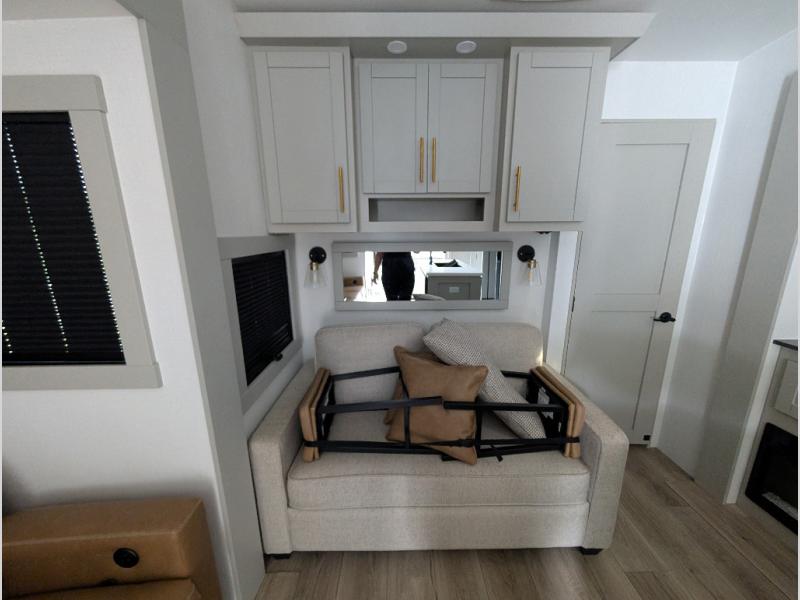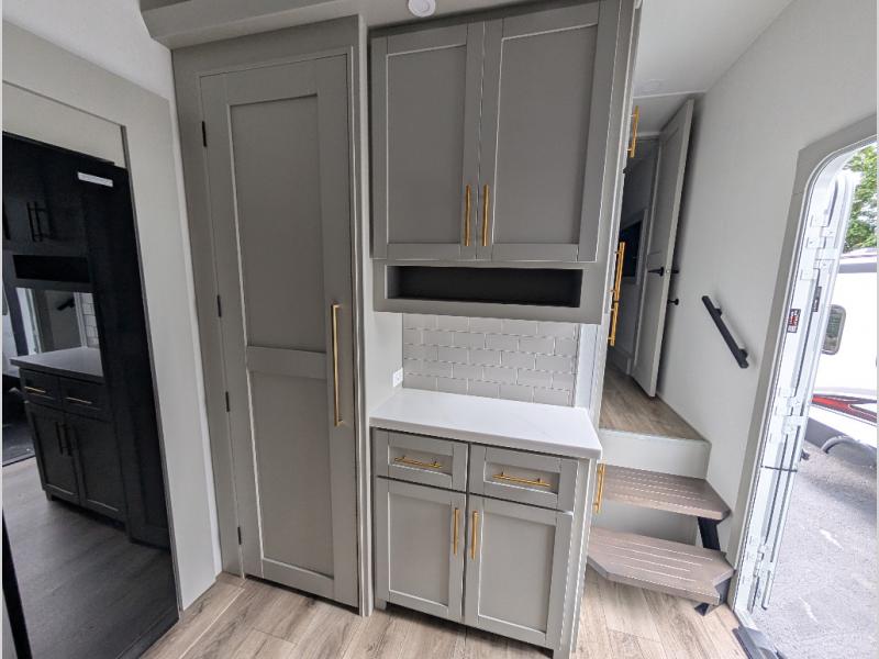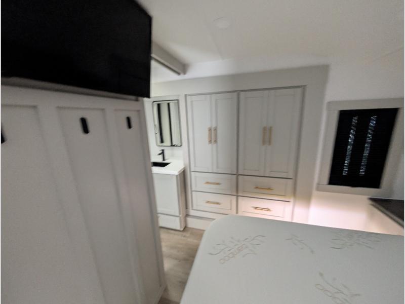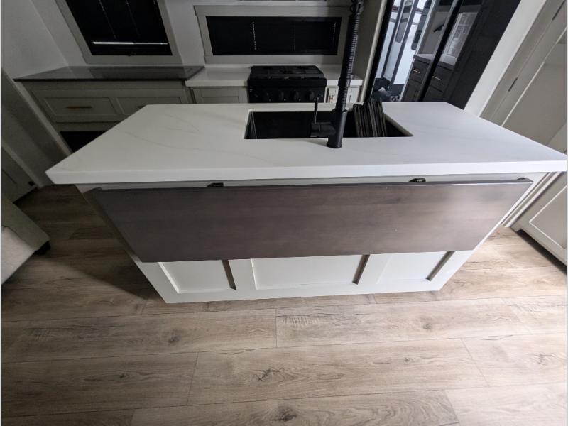 The Brinkley mid-profile Model Z fifth wheels bring you clean lines and an upscale look with plenty of style and exciting new features like the industry first brass plumbing connections. These units also feature an automotive grade front cap, plenty of exterior storage, exterior hot and cold showers, and wide stance leveling jacks for easy set up. Residential frameless windows provide a clean look and beautiful views, and ample electrical outlets and 6 USB/USB-C outlets allow all of your electronics and appliances to easily be used and charged.