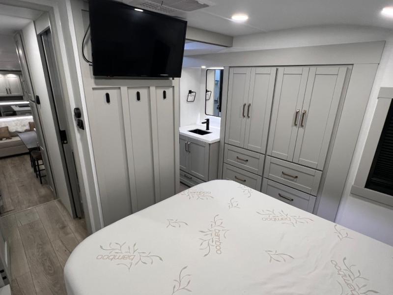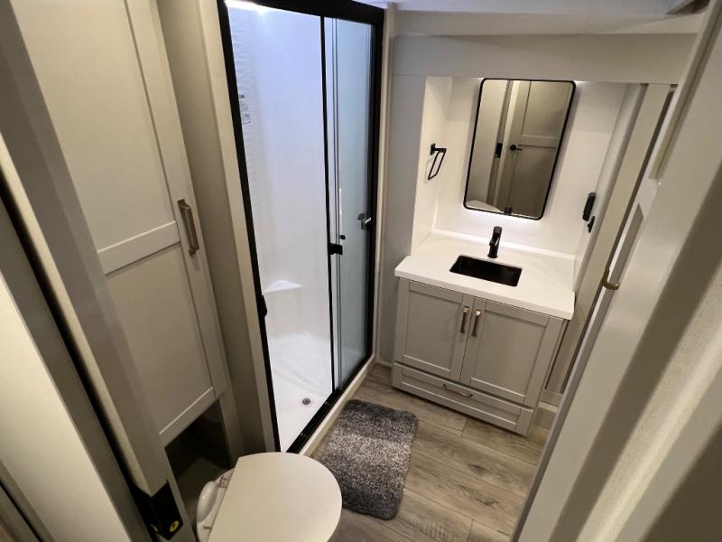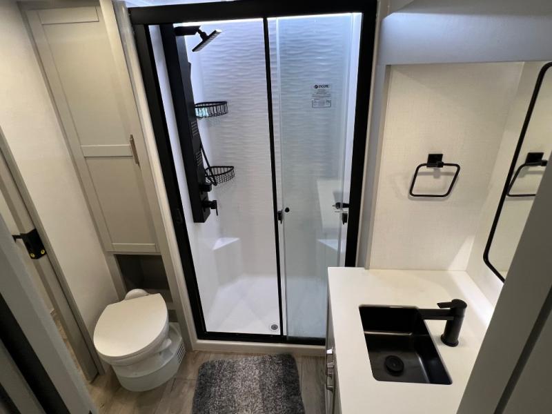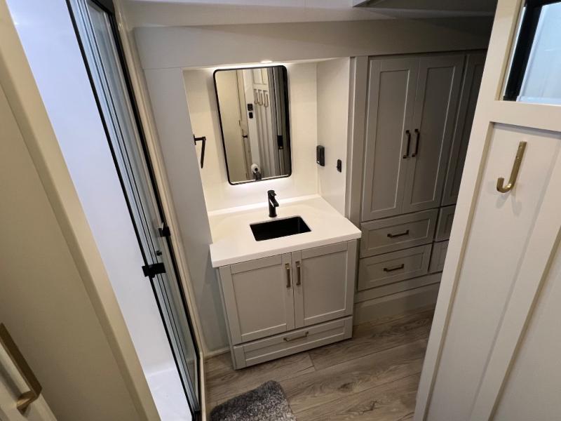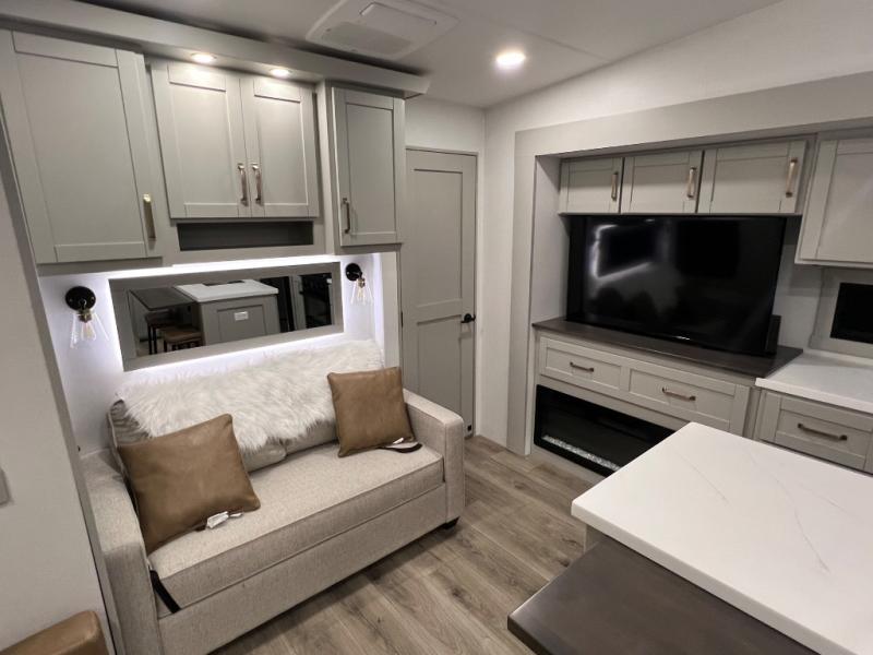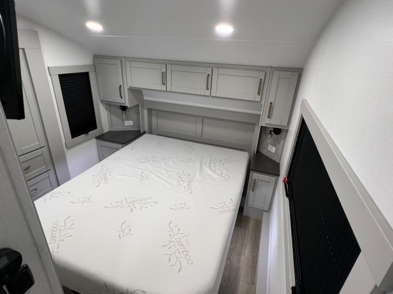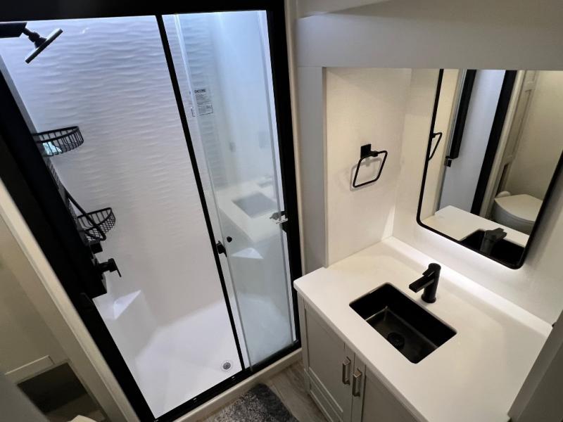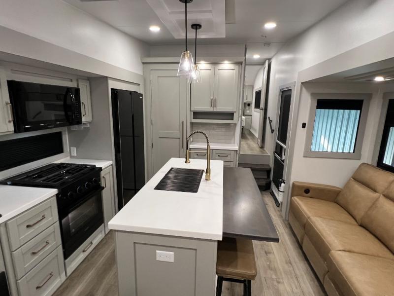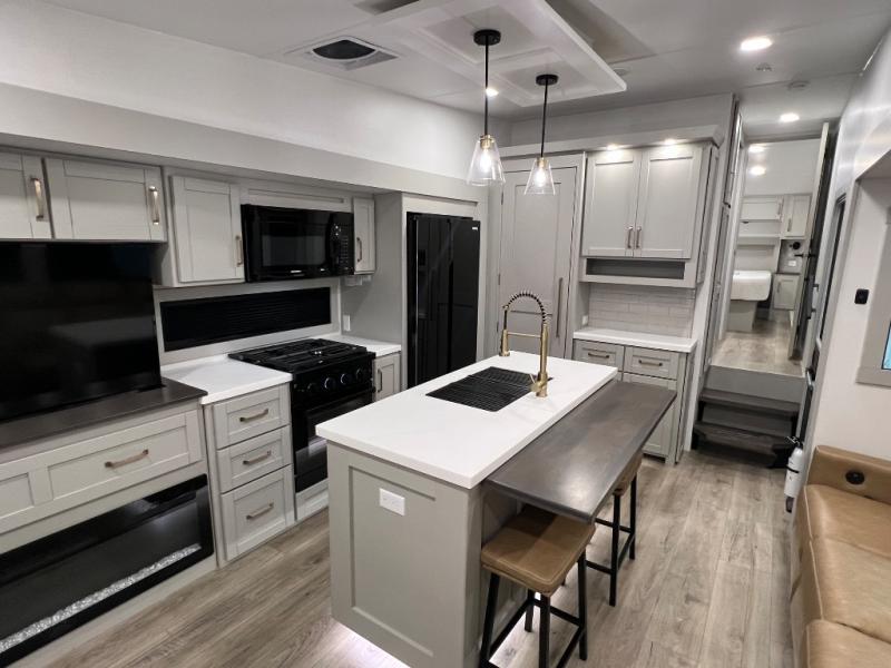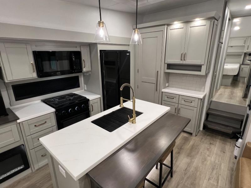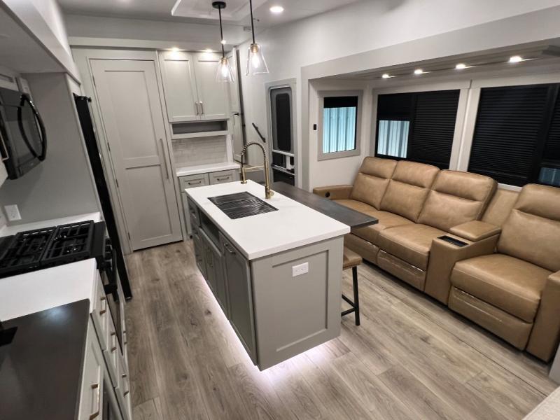 The Brinkley mid-profile Model Z fifth wheels bring you clean lines and an upscale look with plenty of style and exciting new features like the industry first brass plumbing connections. These units also feature an automotive grade front cap, plenty of exterior storage, exterior hot and cold showers, and wide stance leveling jacks for easy set up. Residential frameless windows provide a clean look and beautiful views, and ample electrical outlets and 6 USB/USB-C outlets allow all of your electronics and appliances to easily be used and charged.