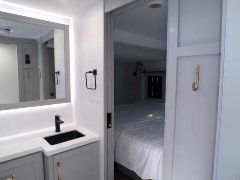 The Brinkley mid-profile Model Z fifth wheels bring you clean lines and an upscale look with plenty of style and exciting new features like the industry first brass plumbing connections. These units also feature an automotive grade front cap, plenty of exterior storage, exterior hot and cold showers, and wide stance leveling jacks for easy set up. Residential frameless windows provide a clean look and beautiful views, and ample electrical outlets and 6 USB/USB-C outlets allow all of your electronics and appliances to easily be used and charged.