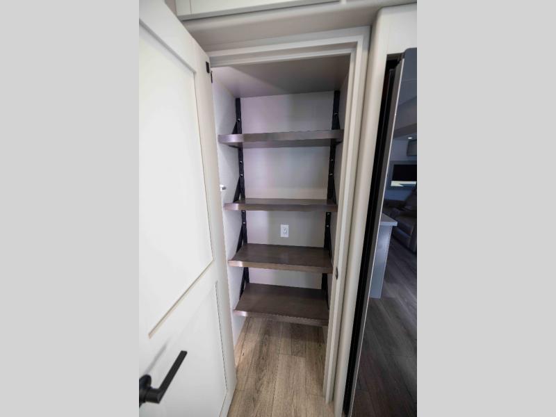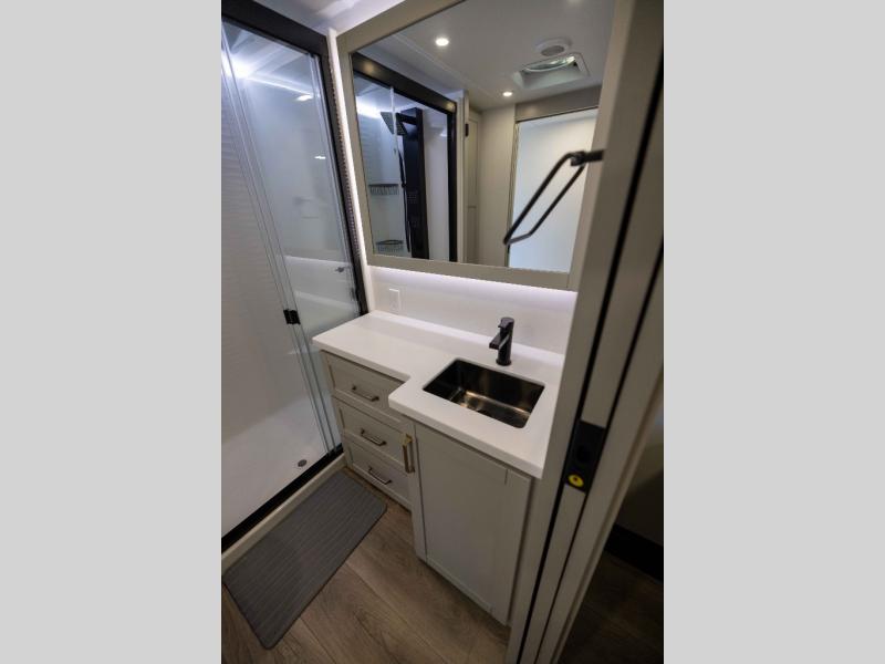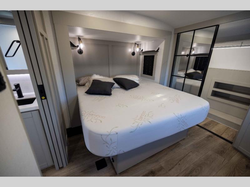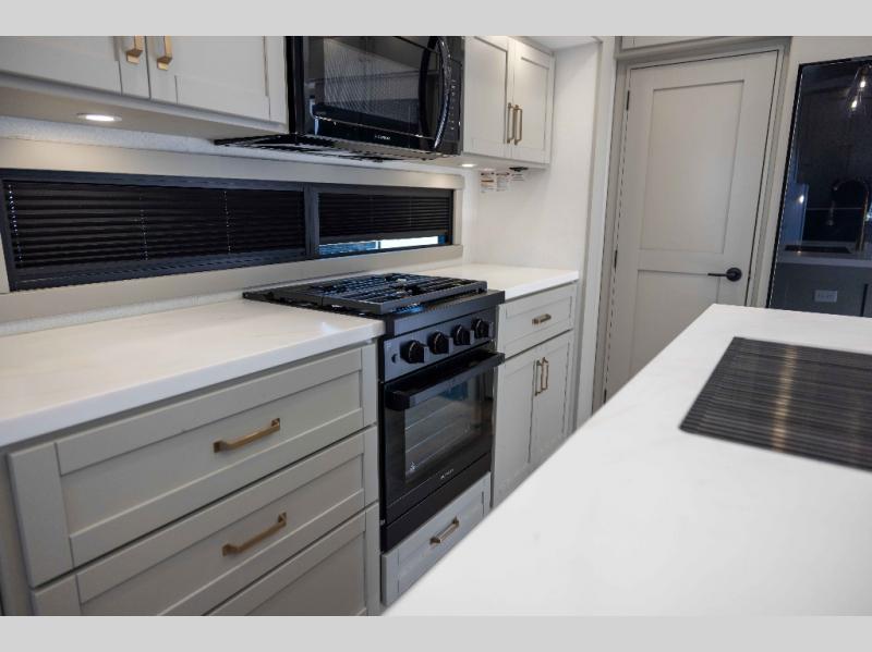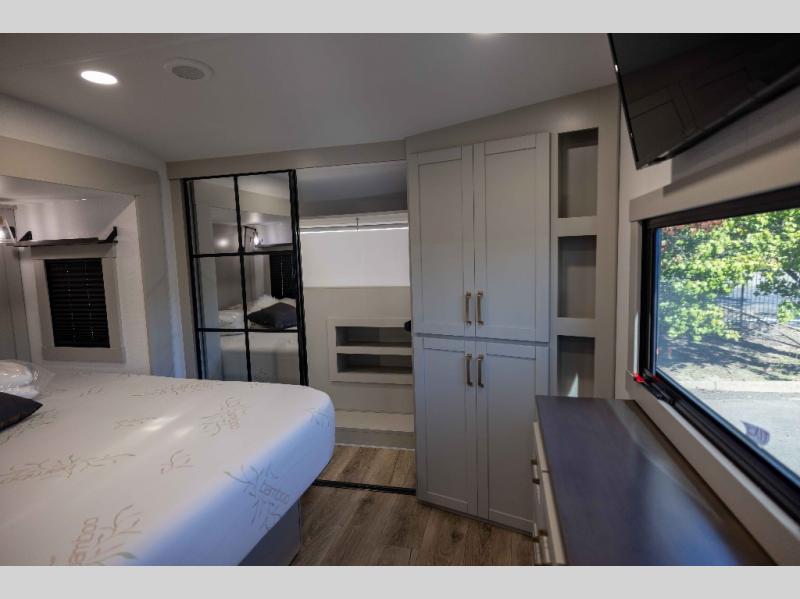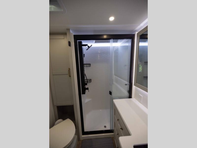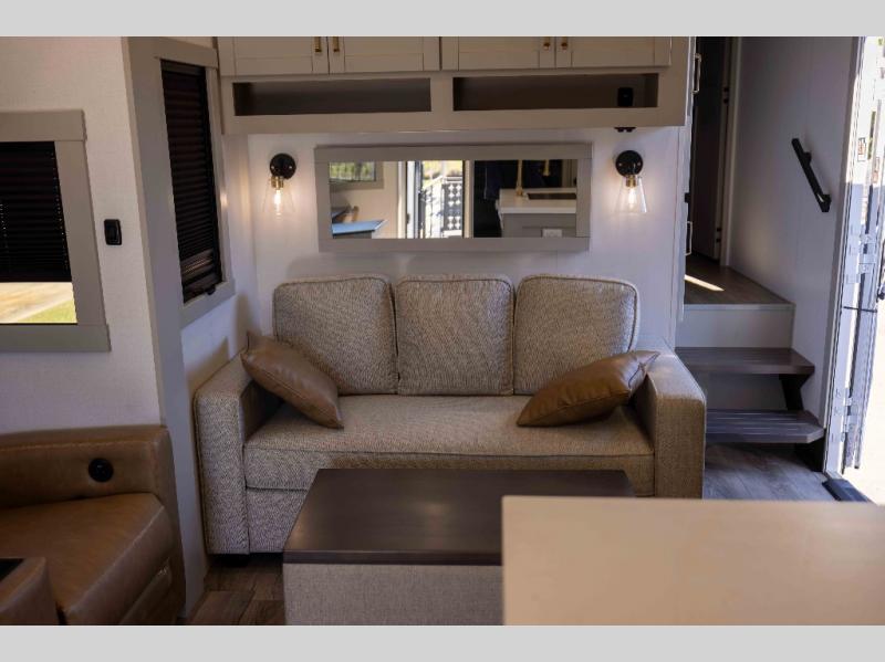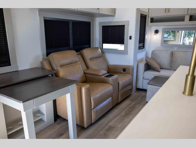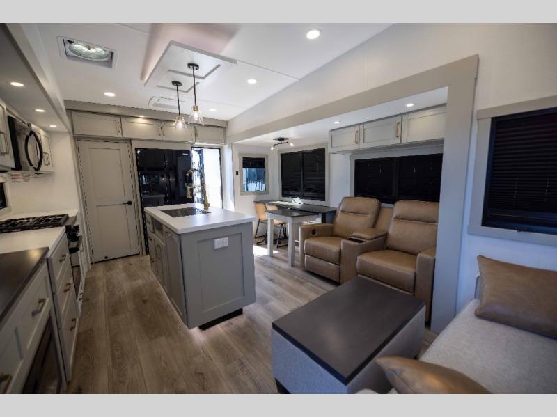 The Brinkley mid-profile Model Z fifth wheels bring you clean lines and an upscale look with plenty of style and exciting new features like the industry first brass plumbing connections. These units also feature an automotive grade front cap, plenty of exterior storage, exterior hot and cold showers, and wide stance leveling jacks for easy set up. Residential frameless windows provide a clean look and beautiful views, and ample electrical outlets and 6 USB/USB-C outlets allow all of your electronics and appliances to easily be used and charged.