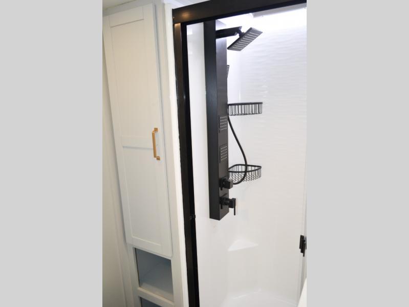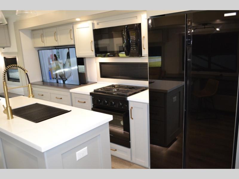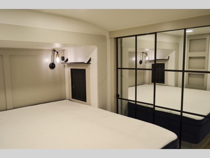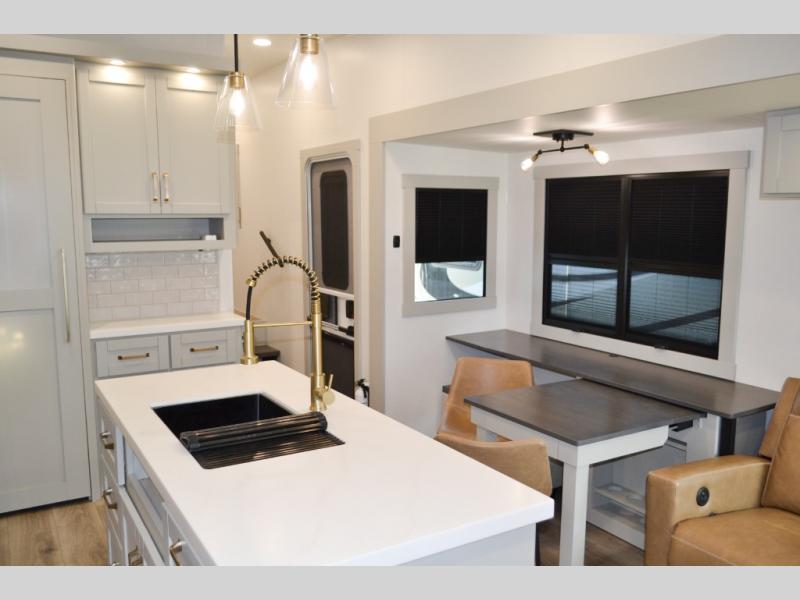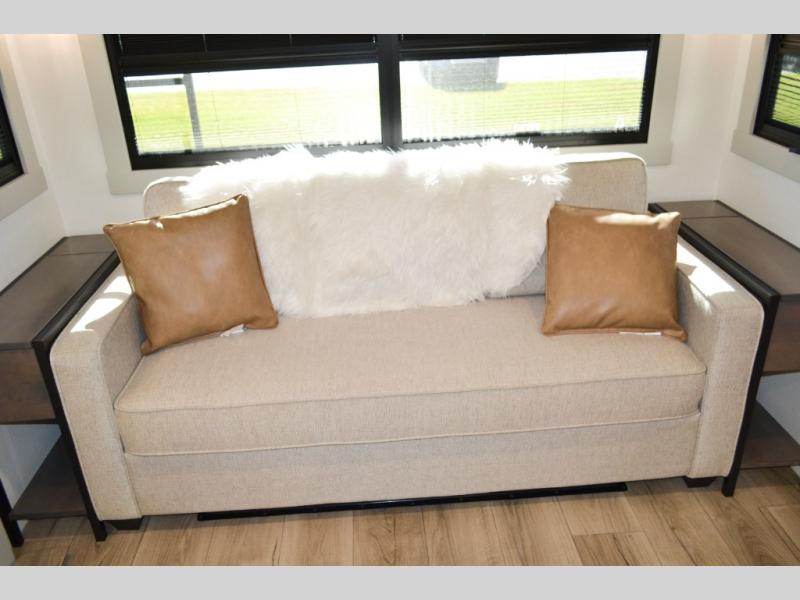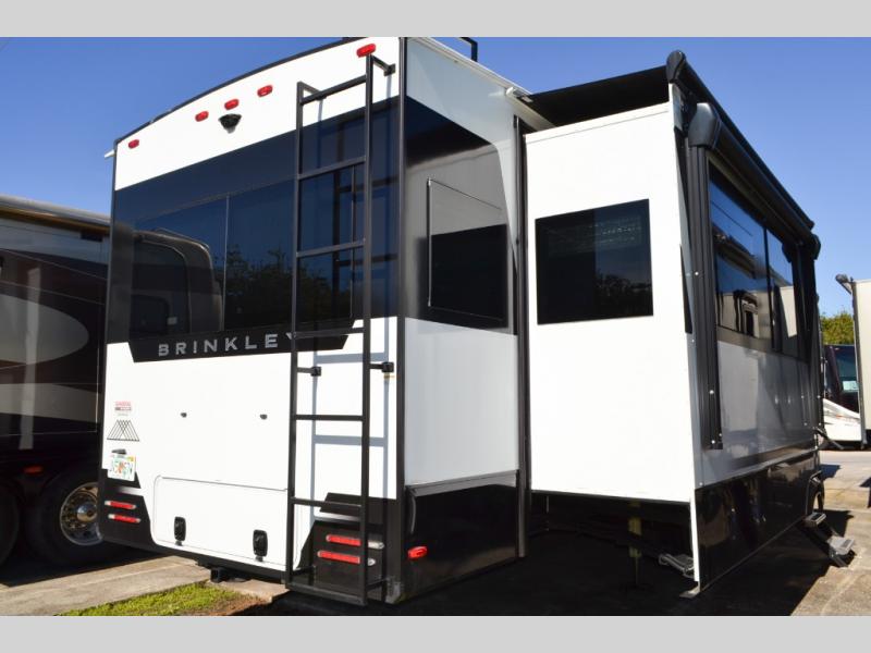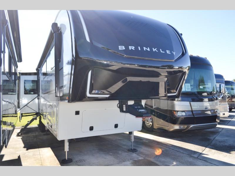 The Brinkley mid-profile Model Z fifth wheels bring you clean lines and an upscale look with plenty of style and exciting new features like the industry first brass plumbing connections. These units also feature an automotive grade front cap, plenty of exterior storage, dual exterior hot and cold showers, and wide stance leveling jacks for easy set up. Residential frameless windows provide a clean look and beautiful views, and ample electrical outlets and 6 USB/USB-C outlets allow all of your electronics and appliances to easily be used and charged.