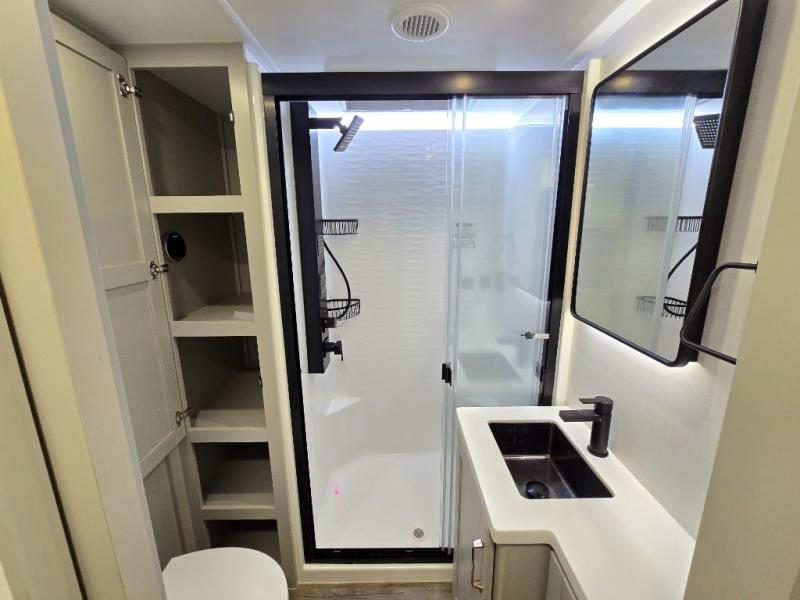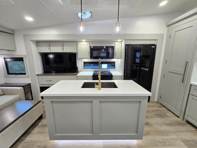The Brinkley mid-profile Model Z fifth wheels bring you clean lines and an upscale look with plenty of style and exciting new features like the industry first brass plumbing connections. These units also feature an automotive grade front cap, plenty of exterior storage, dual exterior hot and cold showers, and wide stance leveling jacks for easy set up. Residential frameless windows provide a clean look and beautiful views, and ample electrical outlets and 6 USB/USB-C outlets allow all of your electronics and appliances to easily be used and charged.