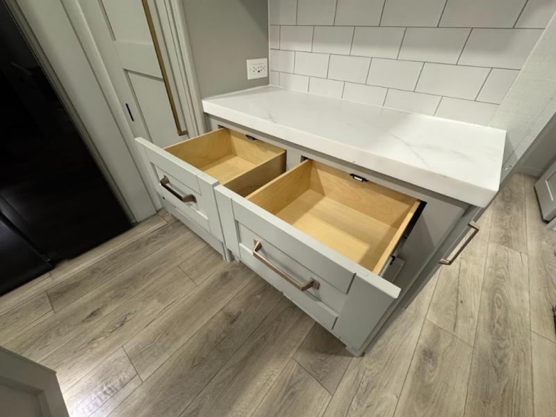 With any Model Z Air travel trailer by Brinkley, you will enjoy premium features at every turn. The industry-first low maintenance roof is sure to be appreciated, plus there are industry-first brass plumbing connections for excellent resistance to corrosion. The drop-frame chassis with over 100 cu. ft. of exterior storage will allow you to bring along camp gear galore, plus there are motion lighting and power outlets for added convenience! You'll also find two hot/cold showers outdoors, along with a 370-watt solar panel, a custom LP box with locked battery storage, and a premium utility center with a retractable 65' water hose to wash off mud from the lake. The interior is just as accommodating with its solid surface countertops, Brinkley CraftSense wood trim construction, integrated window screens and insulated blackout blinds, and the list of luxury features goes on!