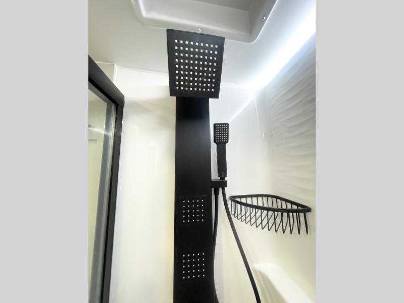 With any Model Z Air travel trailer by Brinkley, you will enjoy premium features at every turn. The industry-first low maintenance roof is sure to be appreciated, plus there are industry-first brass plumbing connections for excellent resistance to corrosion. The drop-frame chassis with over 100 cu. ft. of exterior storage will allow you to bring along camp gear galore, plus there are motion lighting and power outlets for added convenience! You'll also find two hot/cold showers outdoors, along with a 370-watt solar panel, a custom LP box with locked battery storage, and a premium utility center with a retractable 65' water hose to wash off mud from the lake. The interior is just as accommodating with its solid surface countertops, Brinkley CraftSense wood trim construction, integrated window screens and insulated blackout blinds, and the list of luxury features goes on!