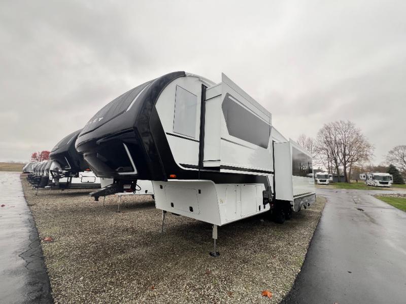 The Brinkley mid-profile Model Z fifth wheels bring you clean lines and an upscale look with plenty of style and exciting new features like the industry first brass plumbing connections. These units also feature an automotive grade front cap, plenty of exterior storage, dual exterior hot and cold showers, and wide stance leveling jacks for easy set up. Residential frameless windows provide a clean look and beautiful views, and ample electrical outlets and 6 USB/USB-C outlets allow all of your electronics and appliances to easily be used and charged.