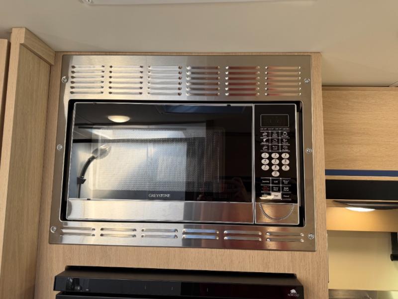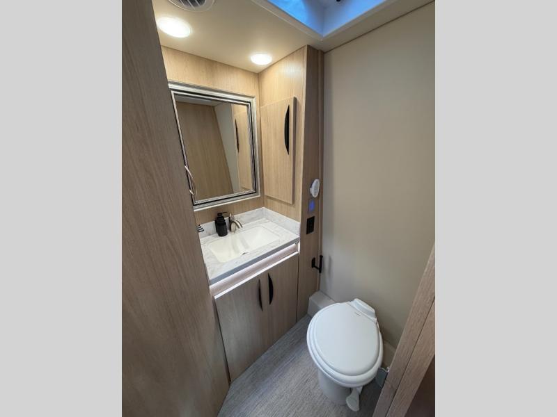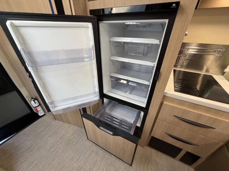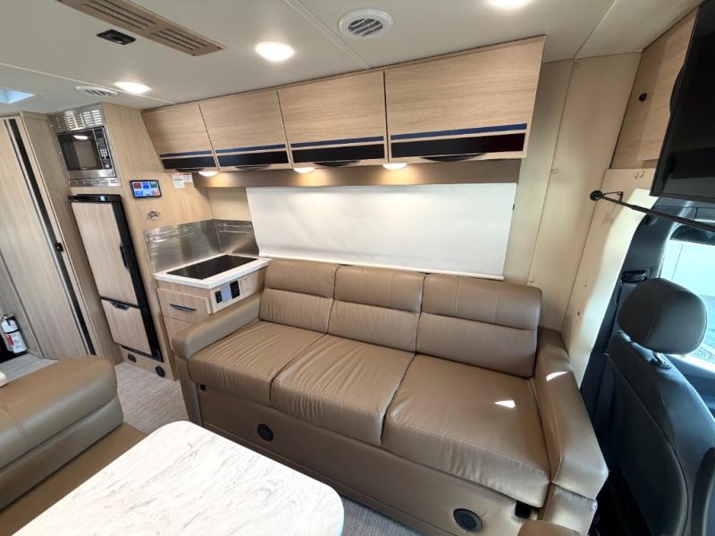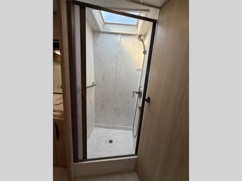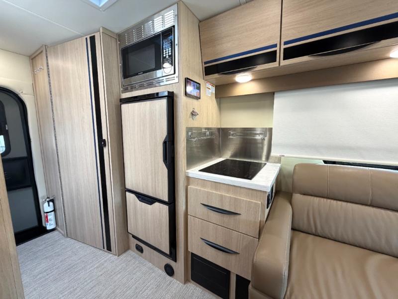 Hit the road in true luxury with this motorhome! The separated bathroom makes it convenient for one to use the private toilet and sink while another cleans up in the 32" x 29" shower. There is also a wardrobe to keep your towels close by. This model includes a powered single sofa and a booth dinette for seating and sleeping space. You can prepare delicious home cooked meals with a single induction cooktop which can be removed for exterior cooking, a Norcold/Thetford 6.2 cu. ft. electric refrigerator to store any leftovers, and microwave to heat them up.
