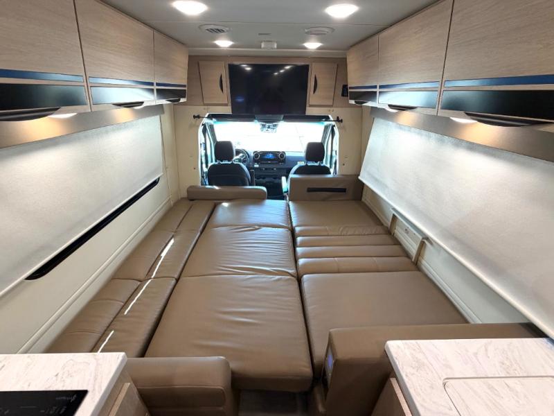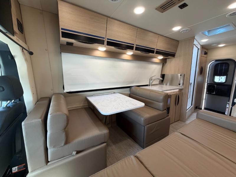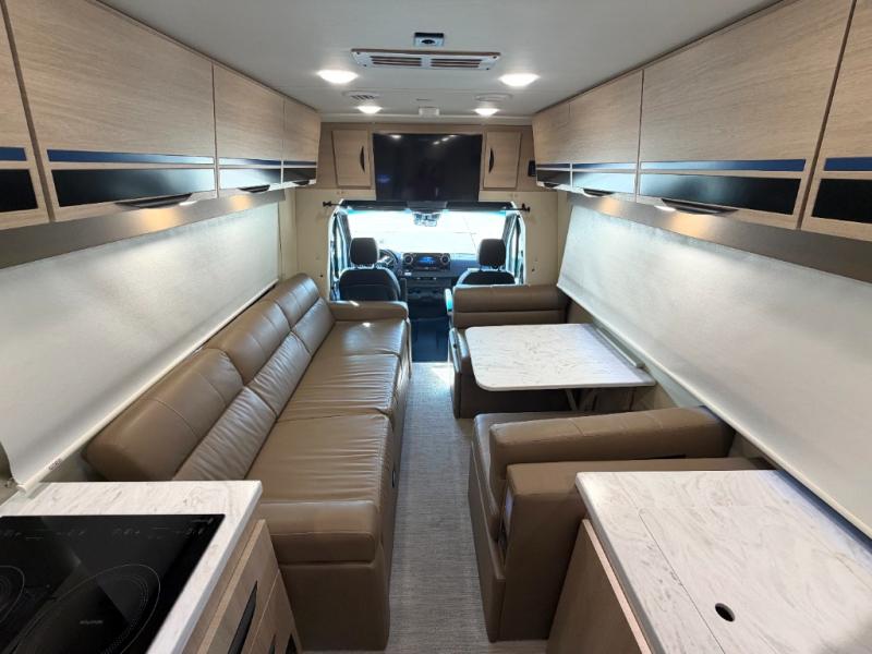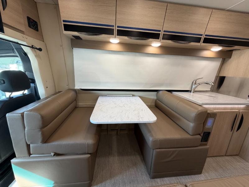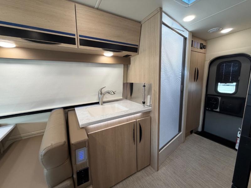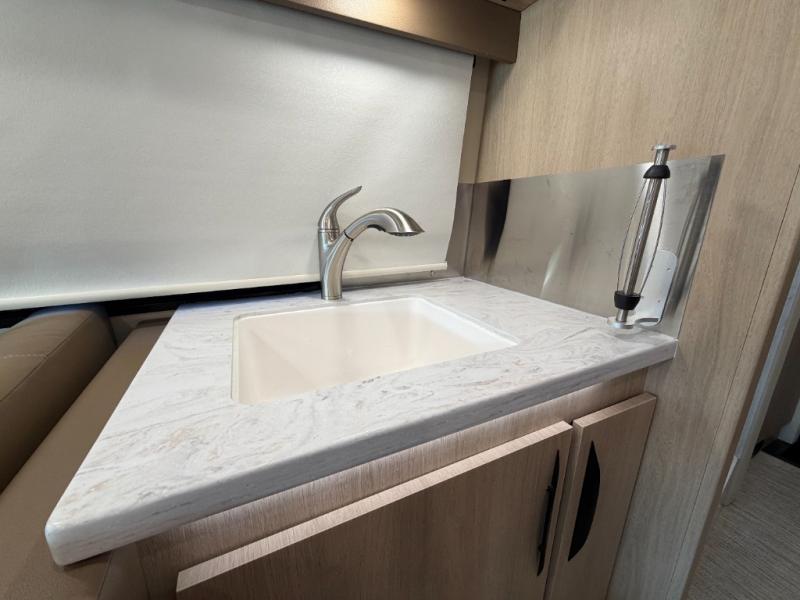 Each one of these Chinook RV Summit Class B+ diesel motorhomes are powered by a Mercedes-Benz Sprinter chassis with a 4 cylinder twin-turbo diesel engine and 9-speed transmission to power your adventures. You'll appreciate the Driver Convenience Package and safety features that include collision warning, a lane keeping system, and side-wind stabilization for a smooth drive. There is also a 4-point leveling system and a Smart Plug with a detachable 30 Amp power cord when you're ready to set up camp. Inside, the stylish interior includes soft touch, padded vinyl finishing, solid surface countertops, shower, and porcelain toilet, plus many more comforts!