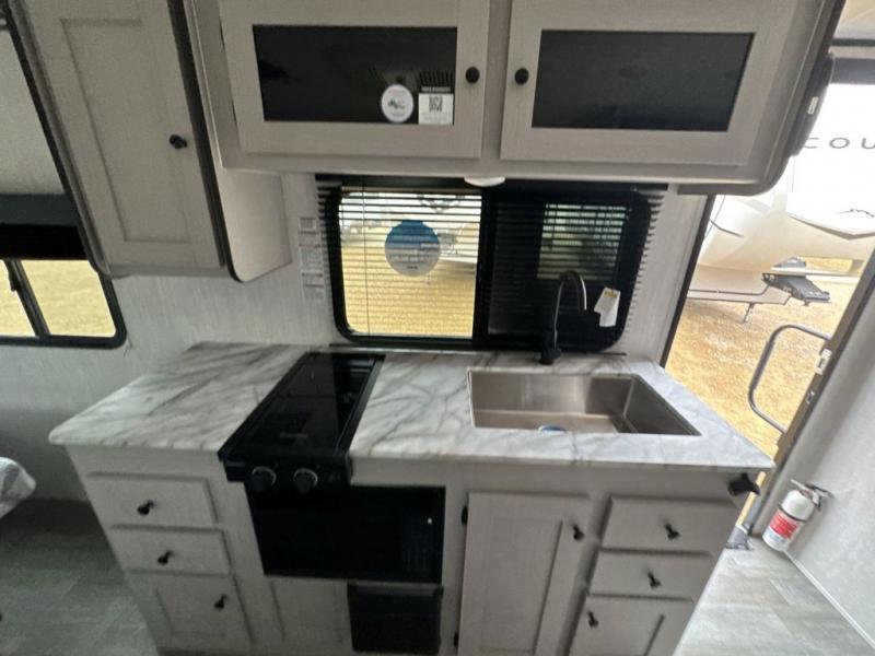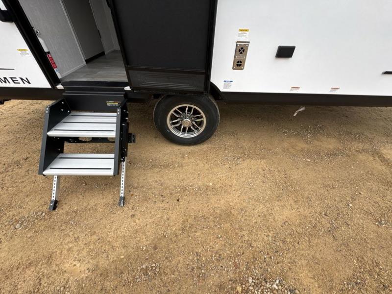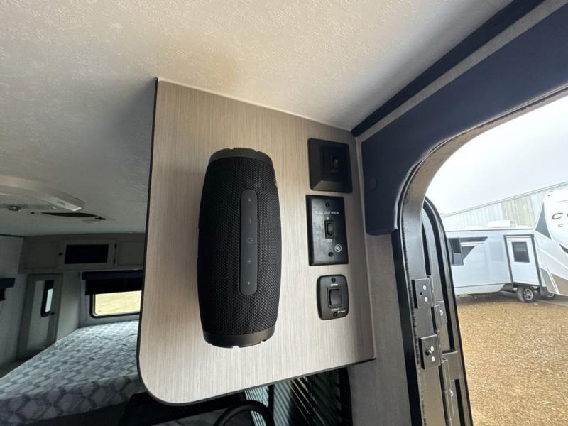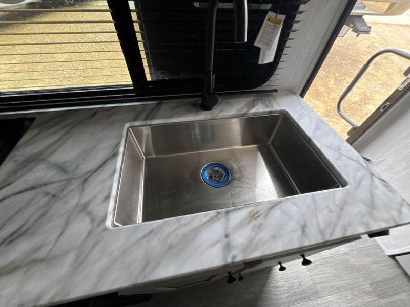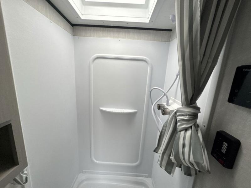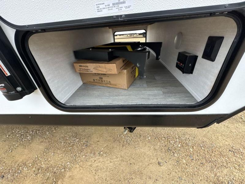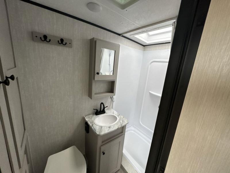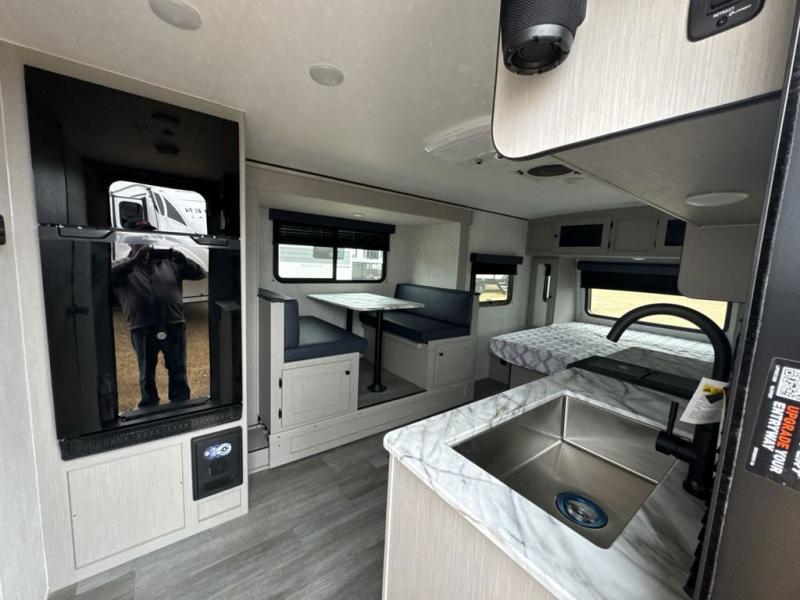 Whether you camp with friends, family or solo, this trailer gives you space for all with a spacious main living and kitchen area thanks to the booth dinette slide! The rear full bath offers a shower, sink, toilet and a wardrobe so you can get ready in privacy. A two burner cooktop and microwave underneath will let you make meals each day, and the 12V refrigerator will be perfect for perishables. The walk-around queen-size bed provides convenience when getting in and out of bed and there are two wardrobes and overhead cabinets to keep your belongings up and away. The power awning protects you from the elements when relaxing outside, and the exterior pass-through storage gives you a place to stow the outdoor equipment like camping chairs, tables, fishing poles and charcoal.